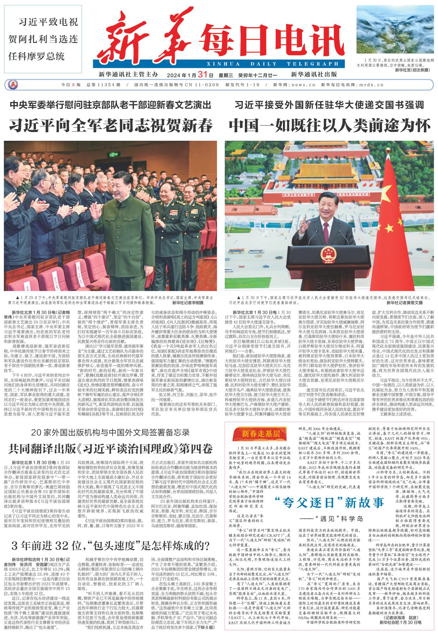 | ( 2024-01-31 ) 稿件来源:新华每日电讯 要闻 |
