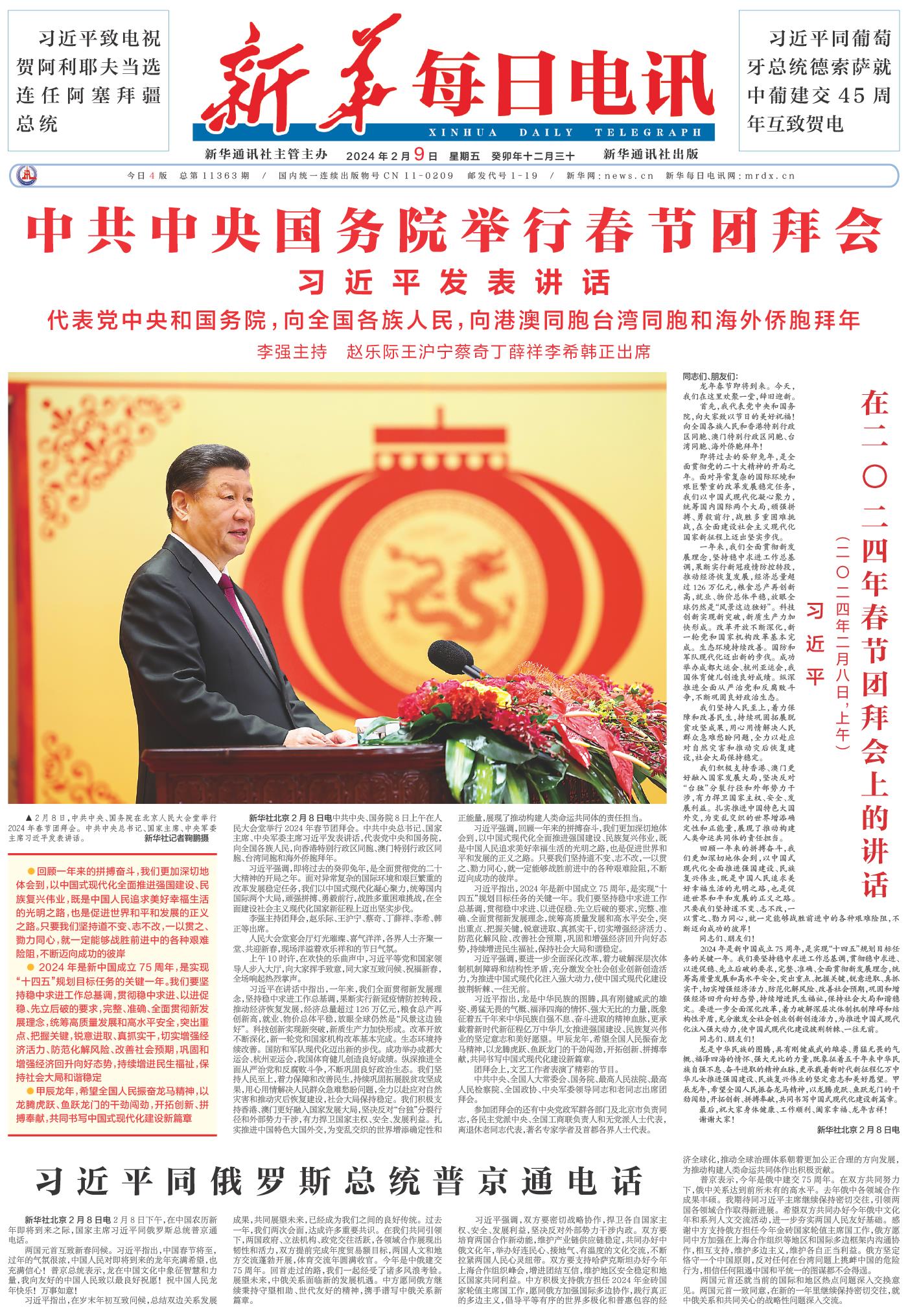 | ( 2024-02-09 ) 稿件来源:新华每日电讯 要闻 |