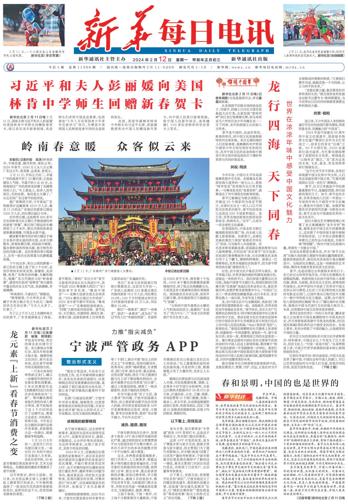 | ( 2024-02-12 ) 稿件来源:新华每日电讯 要闻 |