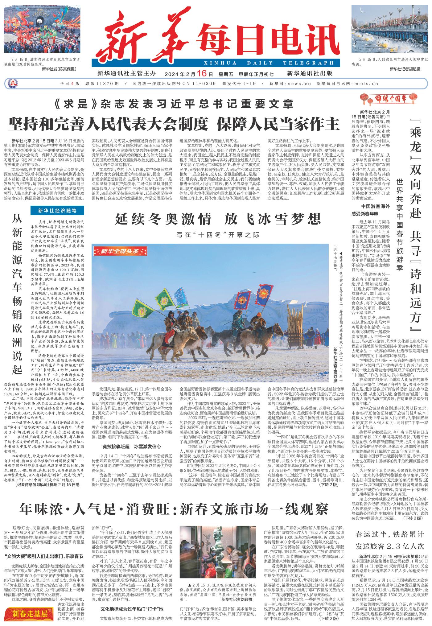 | ( 2024-02-16 ) 稿件来源:新华每日电讯 要闻 |