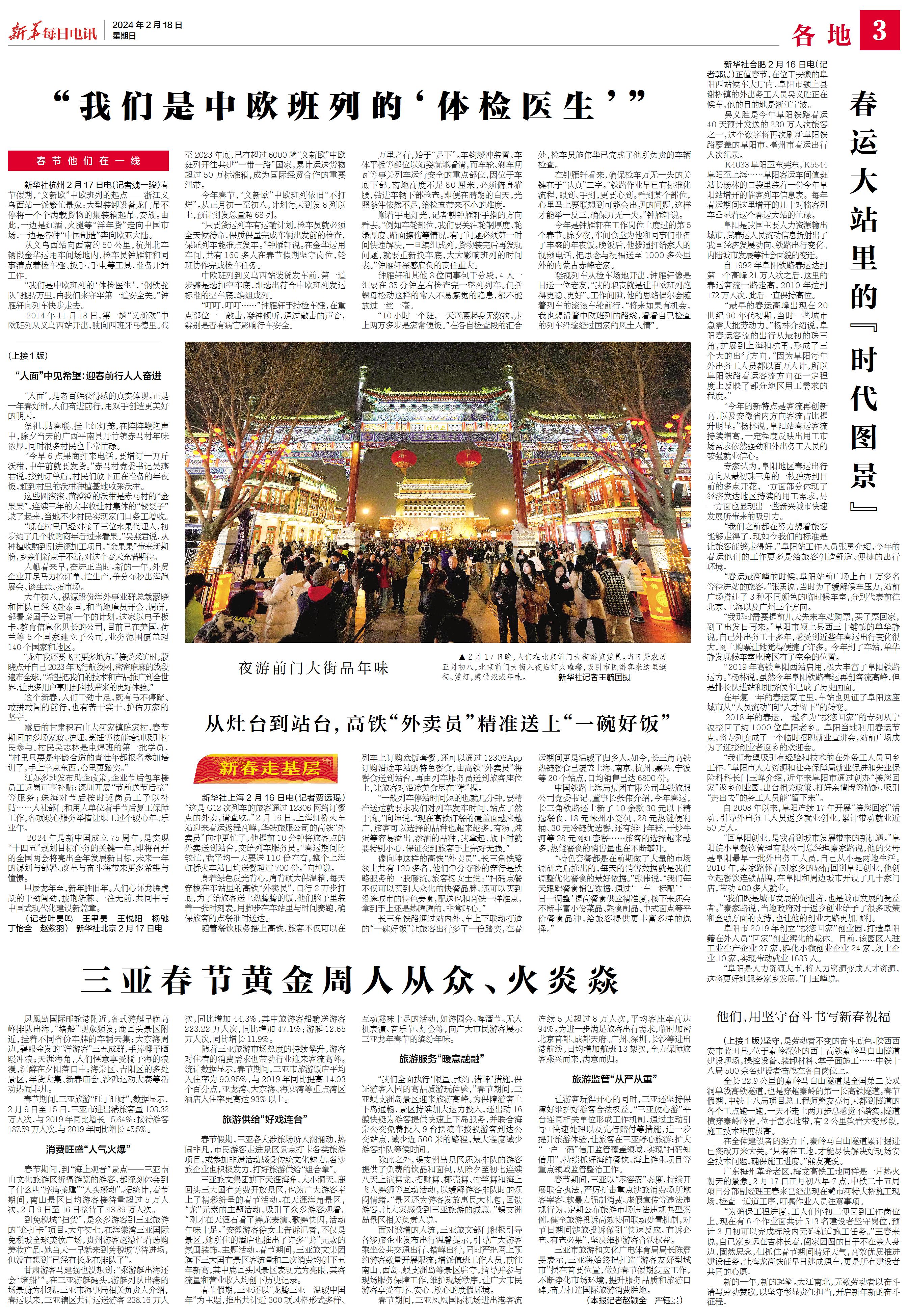 “只要货运列车有运输计划,检车员就必须全天候待命,保质保量完成车辆出发前的检查,保证列车能准点发车。”钟雁轩说。在金华运用车间,共有160多人在春节假期坚守岗位,轮班协作完成检车任务。