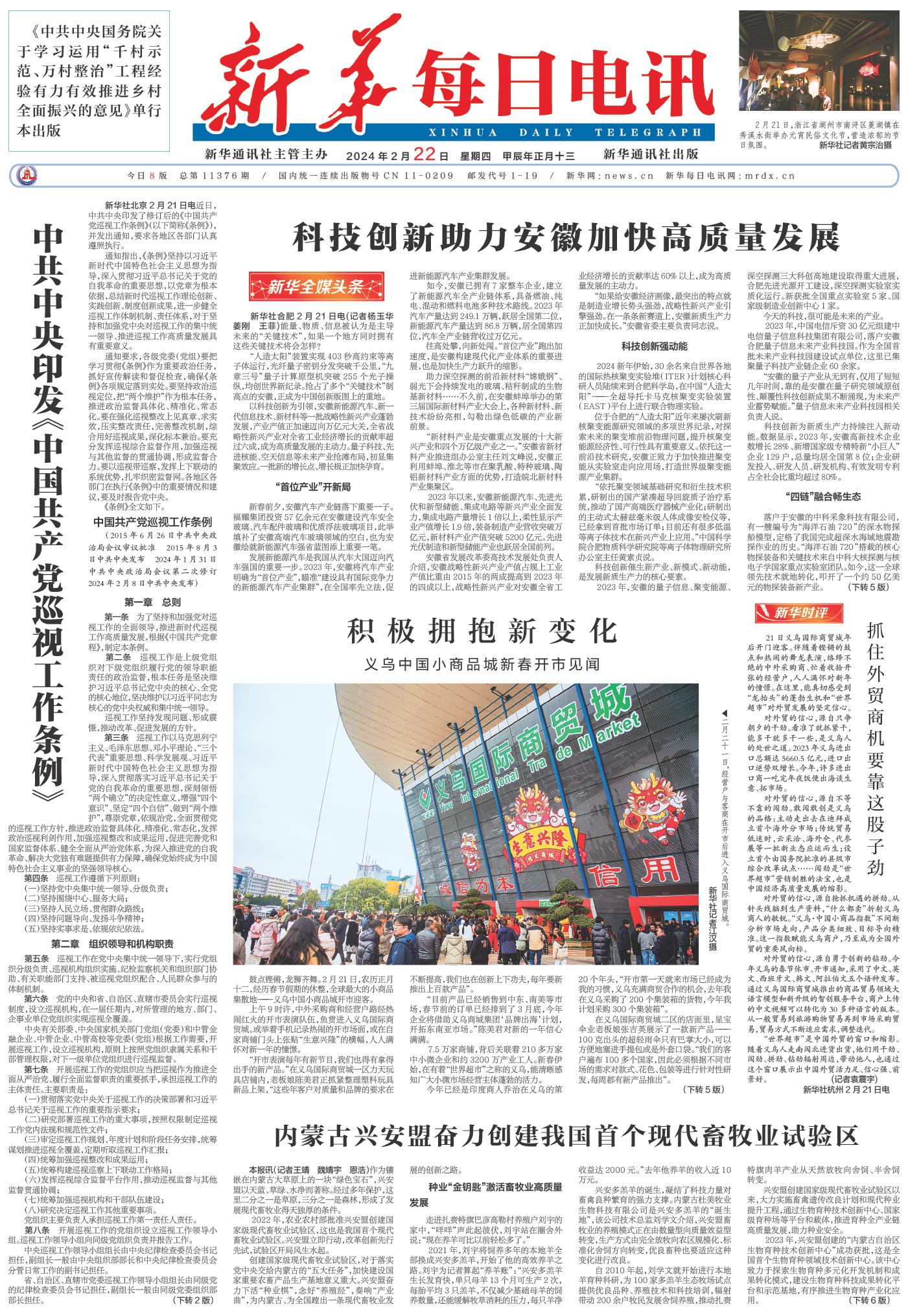 ( 2024-02-22 ) 稿件来源:新华每日电讯 要闻