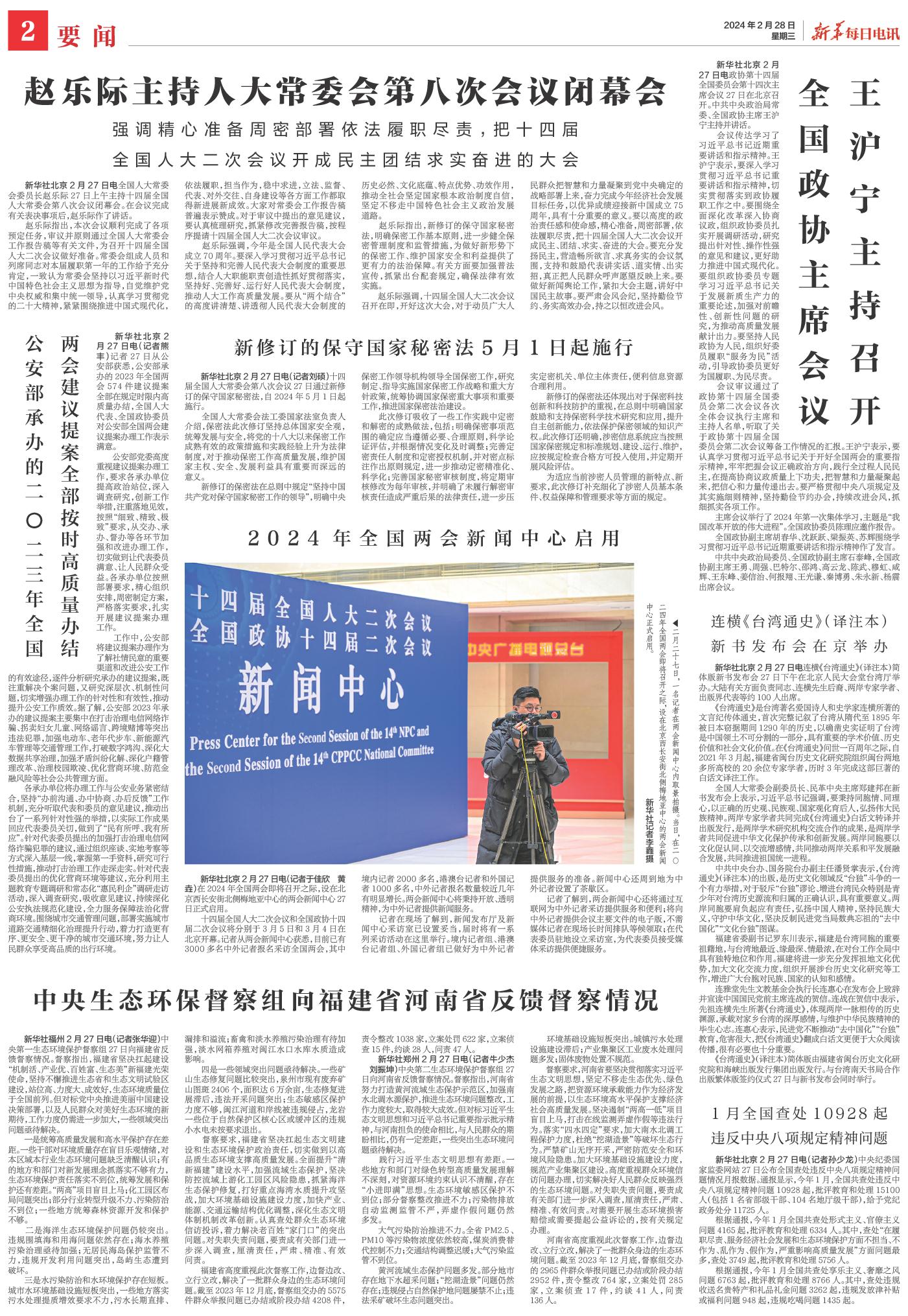 | ( 2024-02-28 ) 稿件来源:新华每日电讯 要闻 |