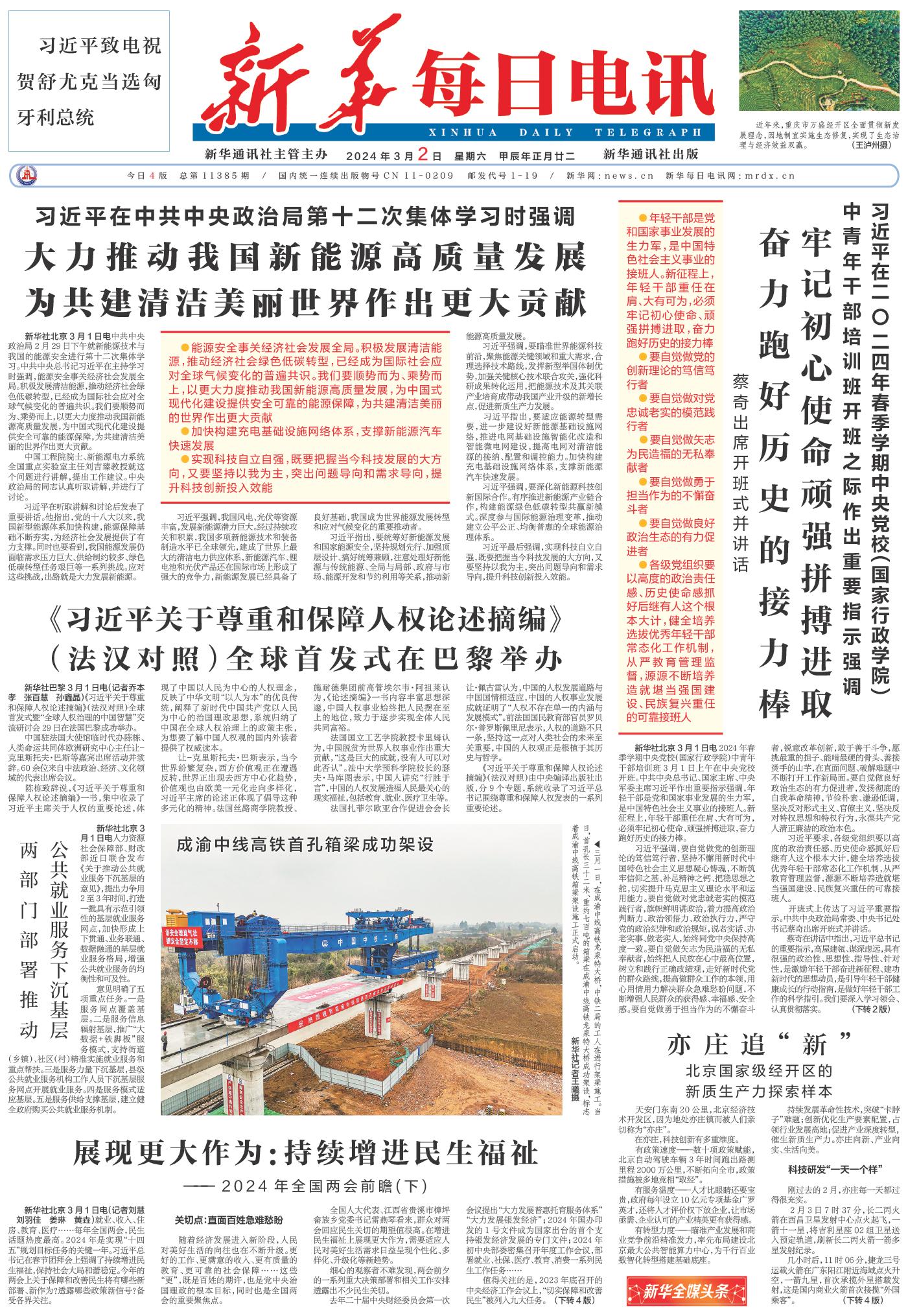 | ( 2024-03-02 ) 稿件来源:新华每日电讯 要闻 |