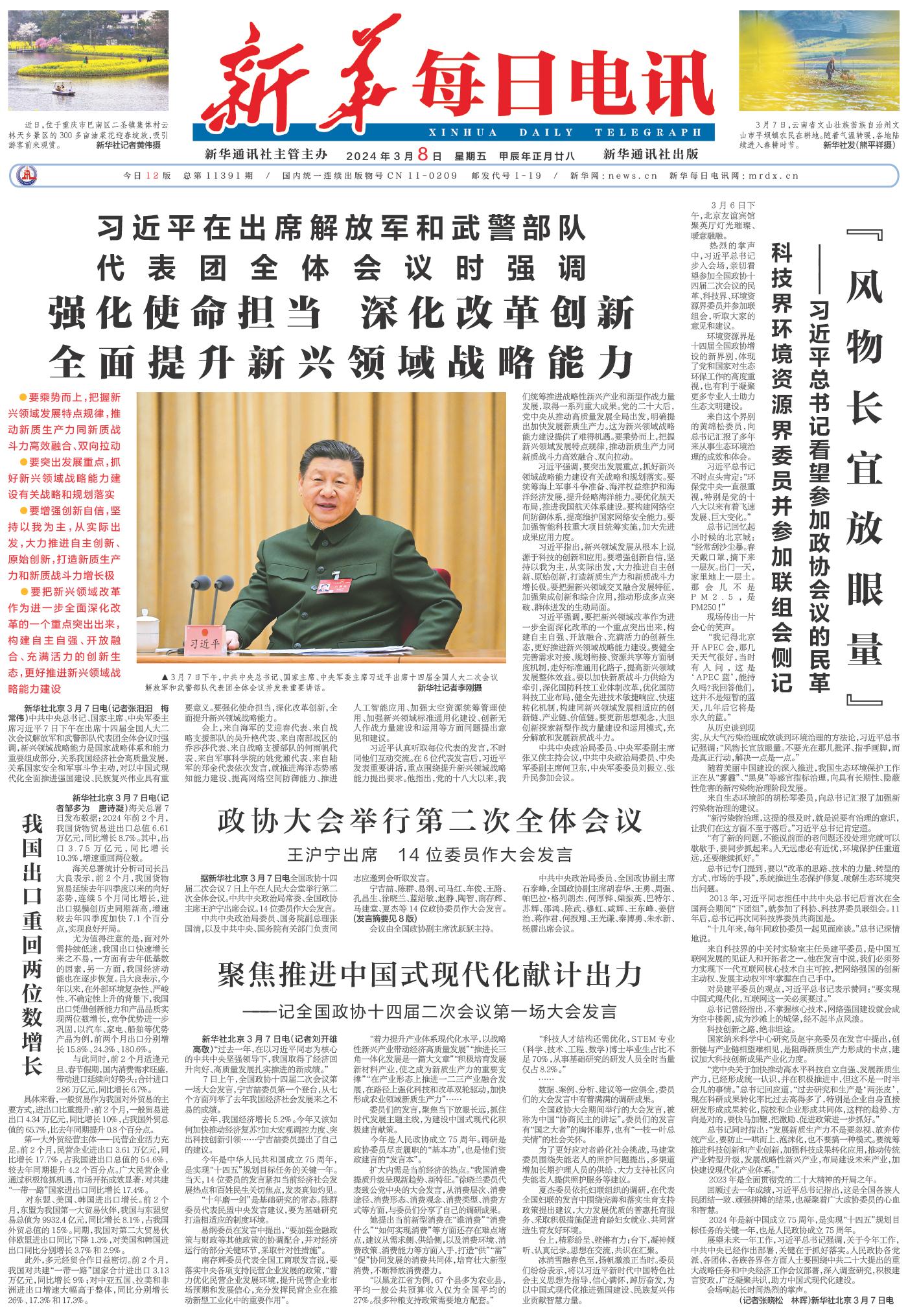 | ( 2024-03-08 ) 稿件来源:新华每日电讯 要闻 |