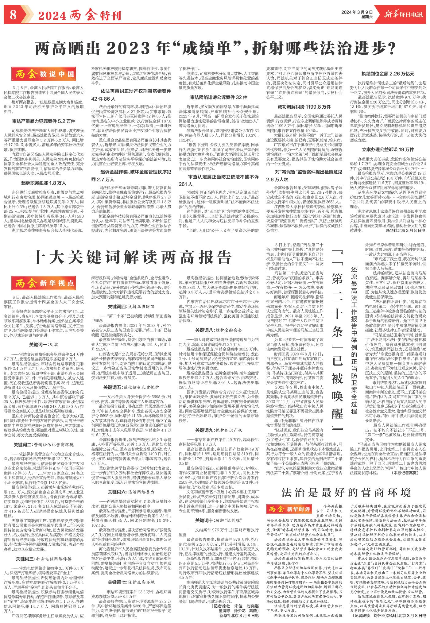 翻开两高报告,一组组数据充满力度和温度,彰显2023年司法机关维护公平正义的履职担当。