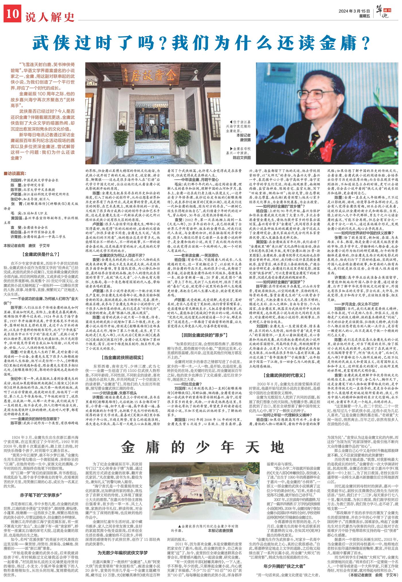 “有一天借到半部《射雕英雄传》,一下入迷,手不释卷,年少的我,只要捧起金庸小说,内心就充满了幸福感。”不少“70后”“80后”“90后”甚至“00后”,每每聊起金庸的武侠小说,浑身都洋溢着兴奋与喜悦。