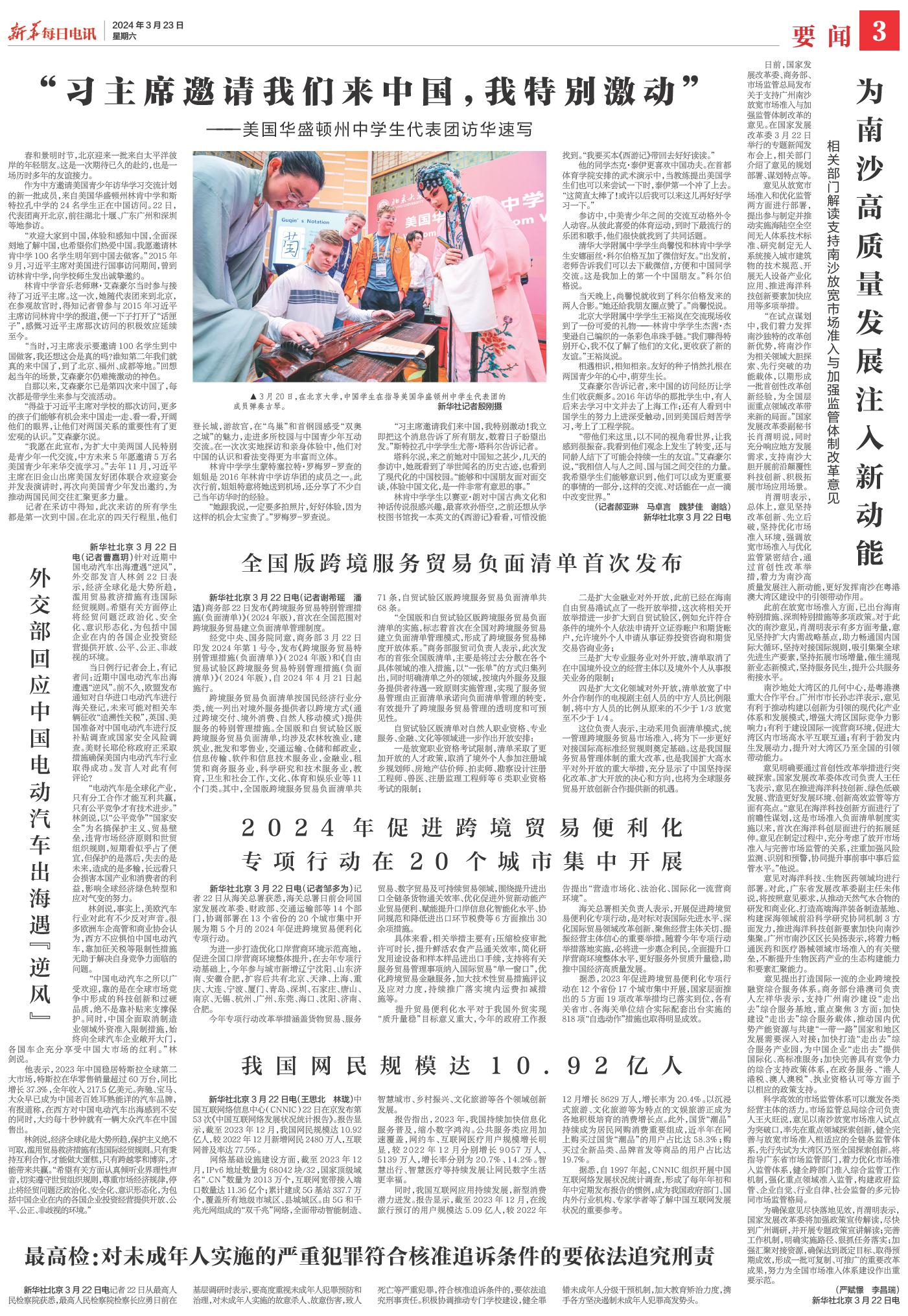 ( 2024-03-23 ) 稿件来源:新华每日电讯 要闻