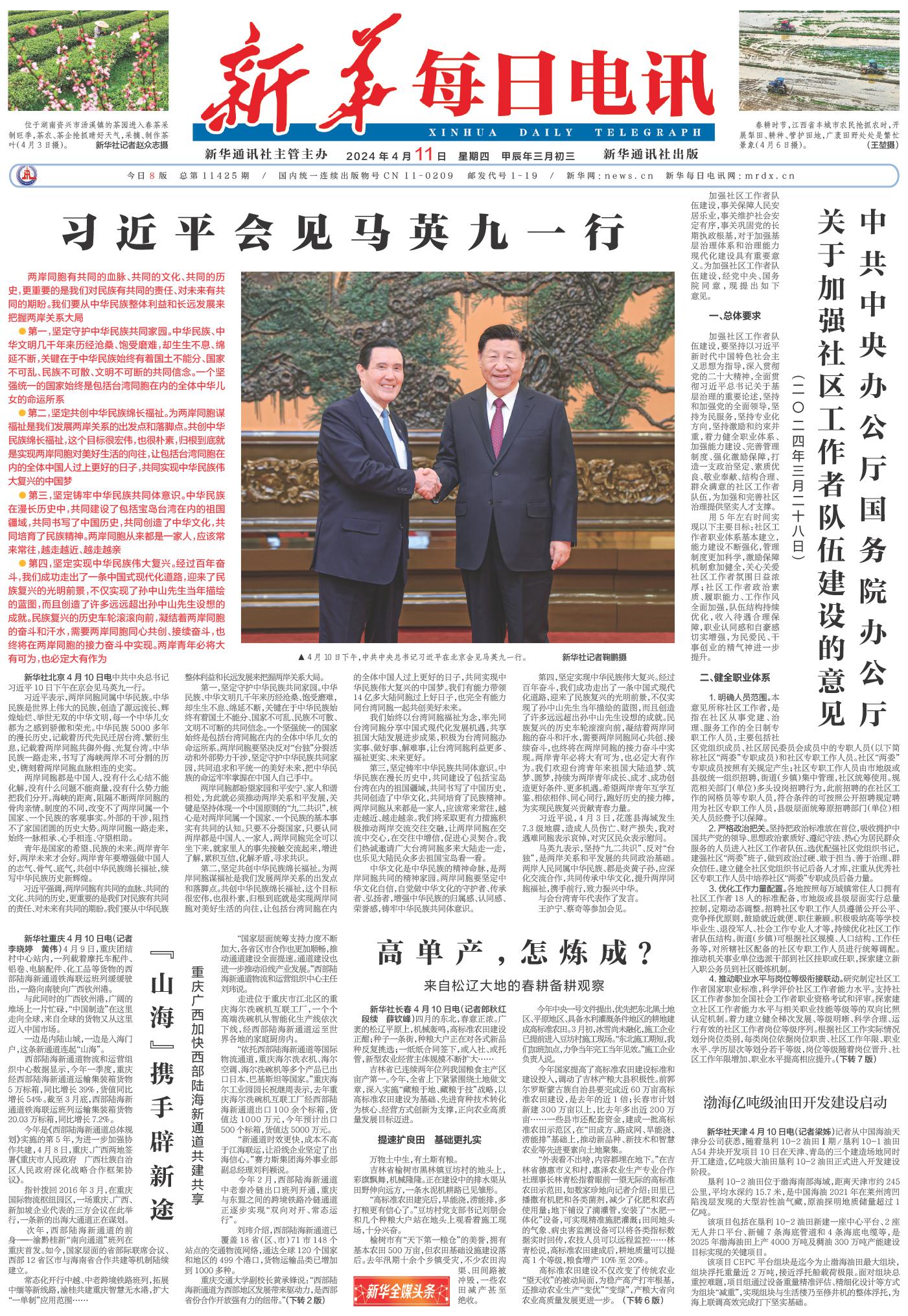 | ( 2024-04-11 ) 稿件来源:新华每日电讯 要闻 |