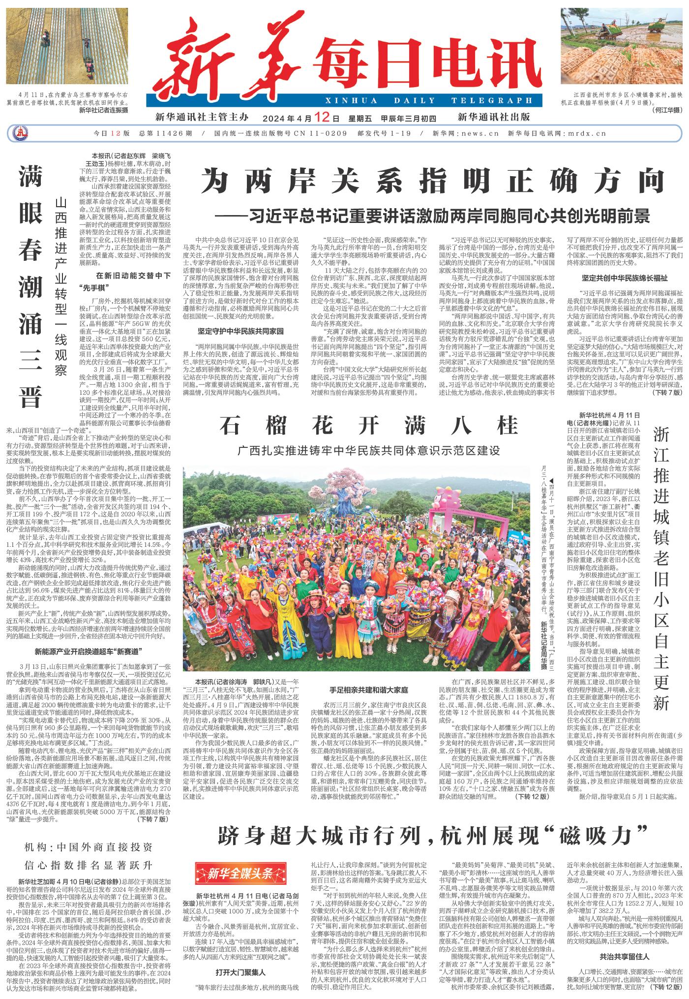 (记者陈键兴 赵博 石龙洪 王承昊 尚昊 魏梦佳 洪泽华 王佳琳 齐菲) 新华社北京4月11日电