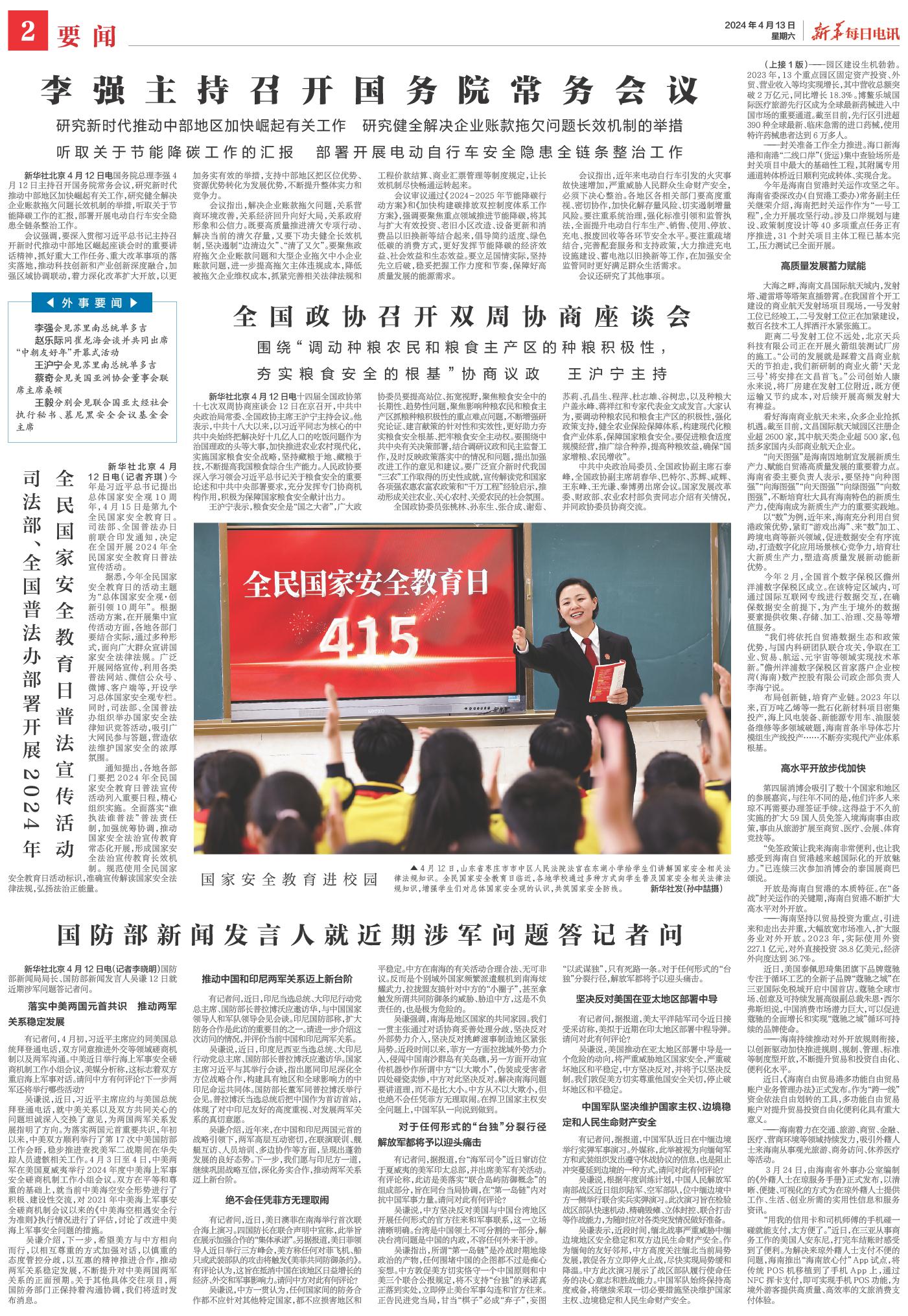 | ( 2024-04-13 ) 稿件来源:新华每日电讯 要闻 |