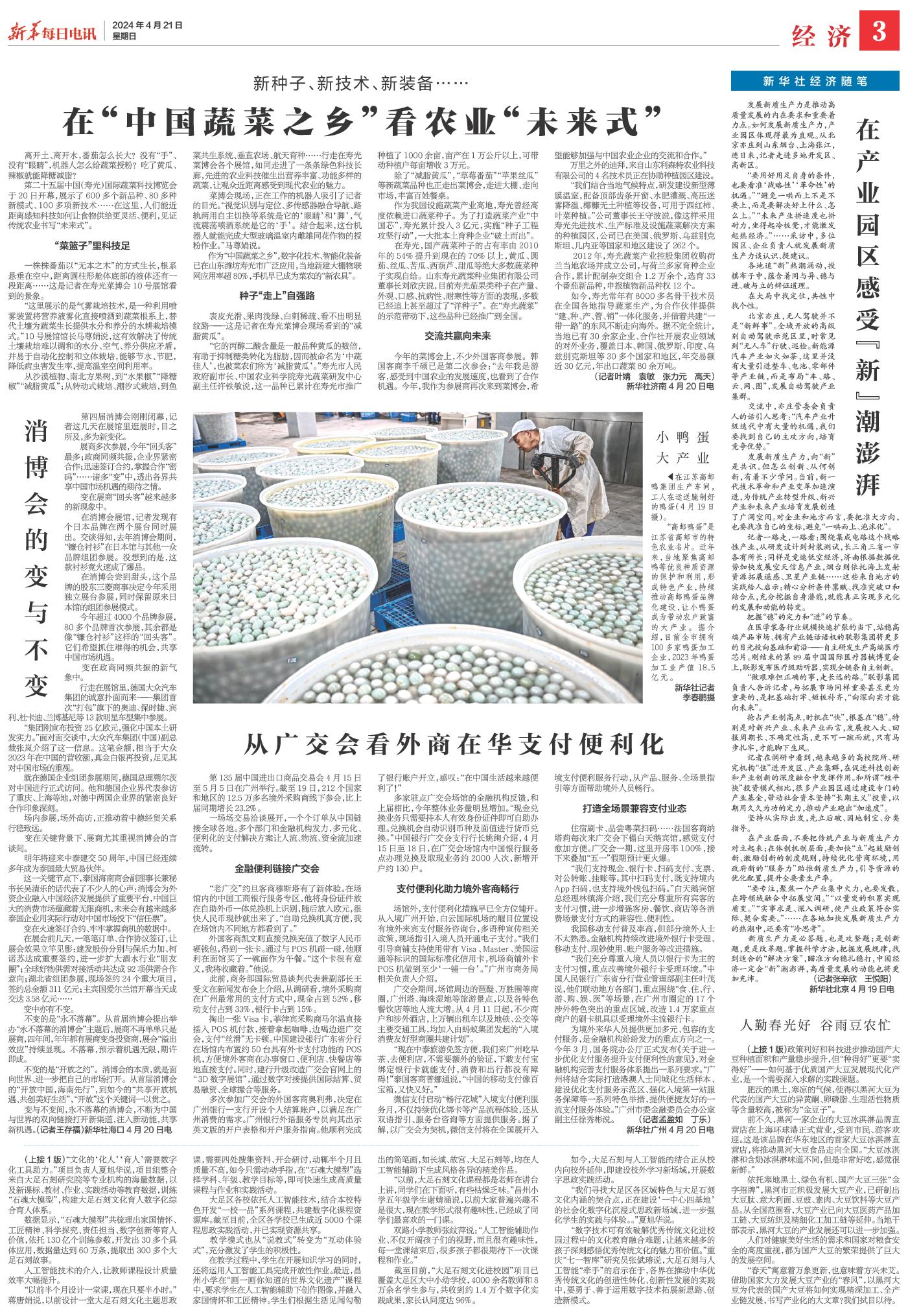 | ( 2024-04-21 ) 稿件来源:新华每日电讯 经济 |