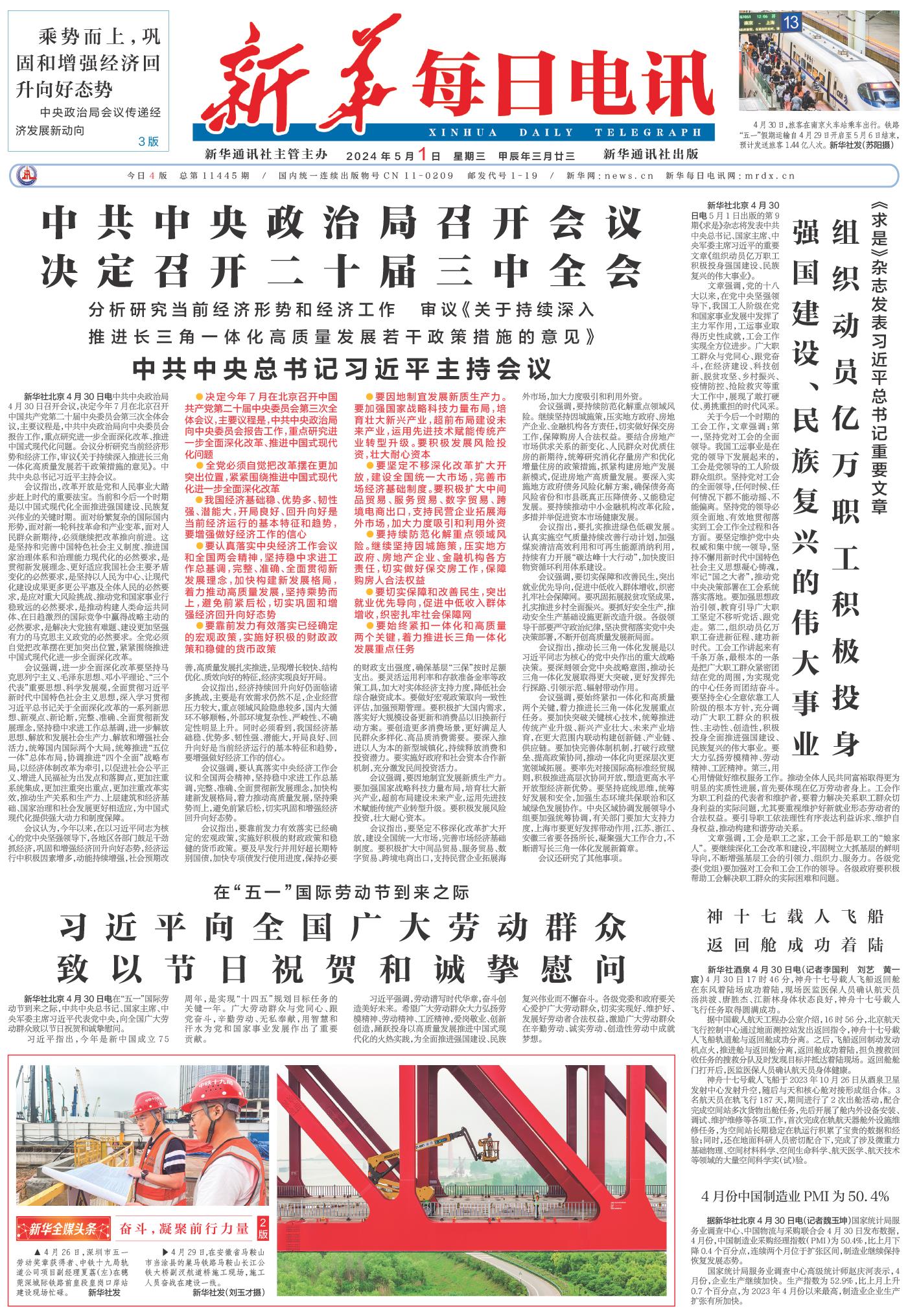 | ( 2024-05-01 ) 稿件来源:新华每日电讯 要闻 |