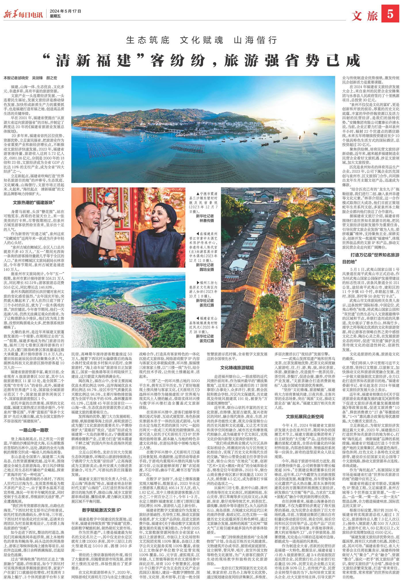 文旅产业一头连着经济发展、一头连着民生福祉,发展文旅经济是推动绿色发展、加快形成新质生产力的重要抓手,也是福建打造有福之地、创造高品质生活的关键举措。