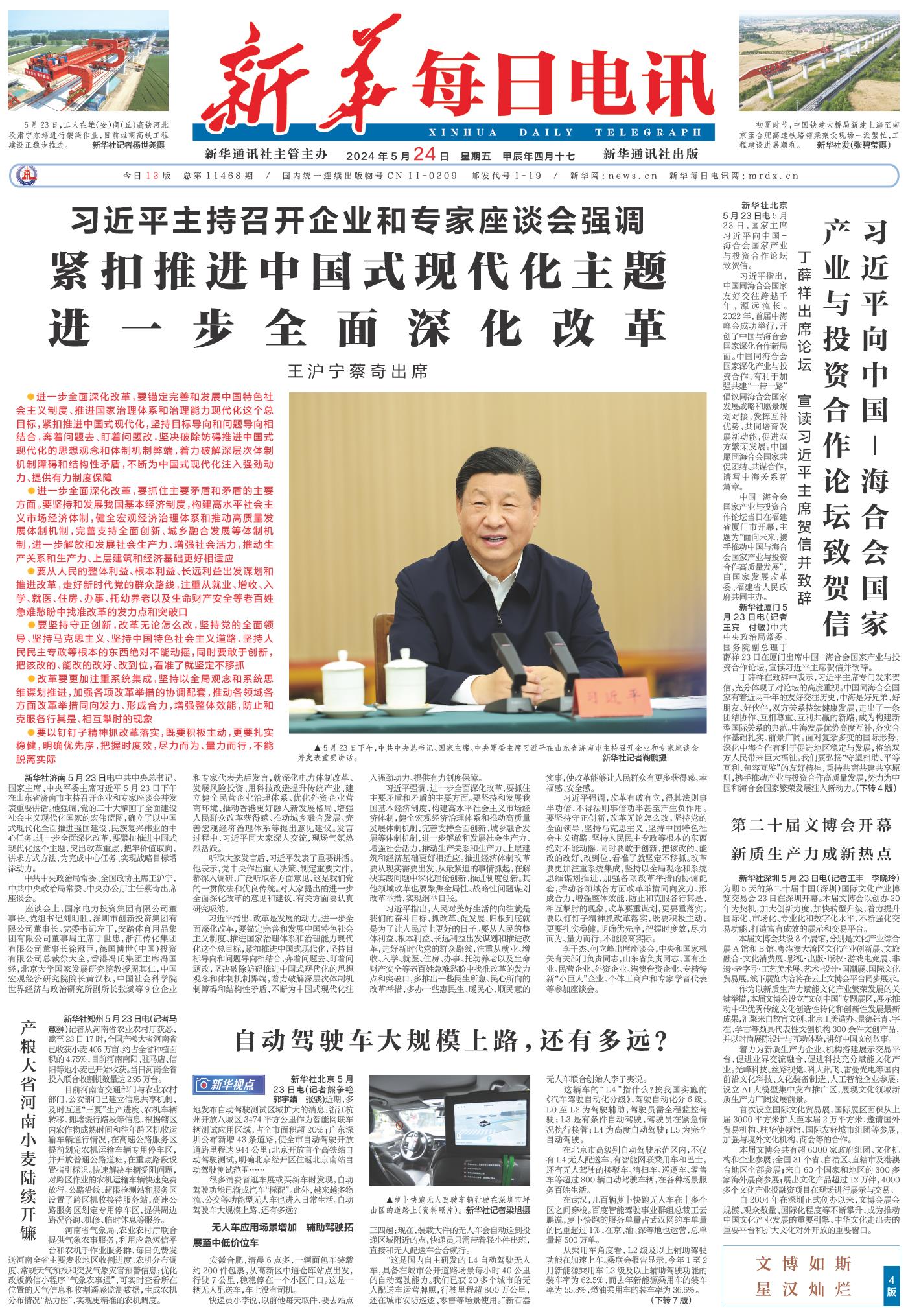 ( 2024-05-24 ) 稿件来源:新华每日电讯 要闻