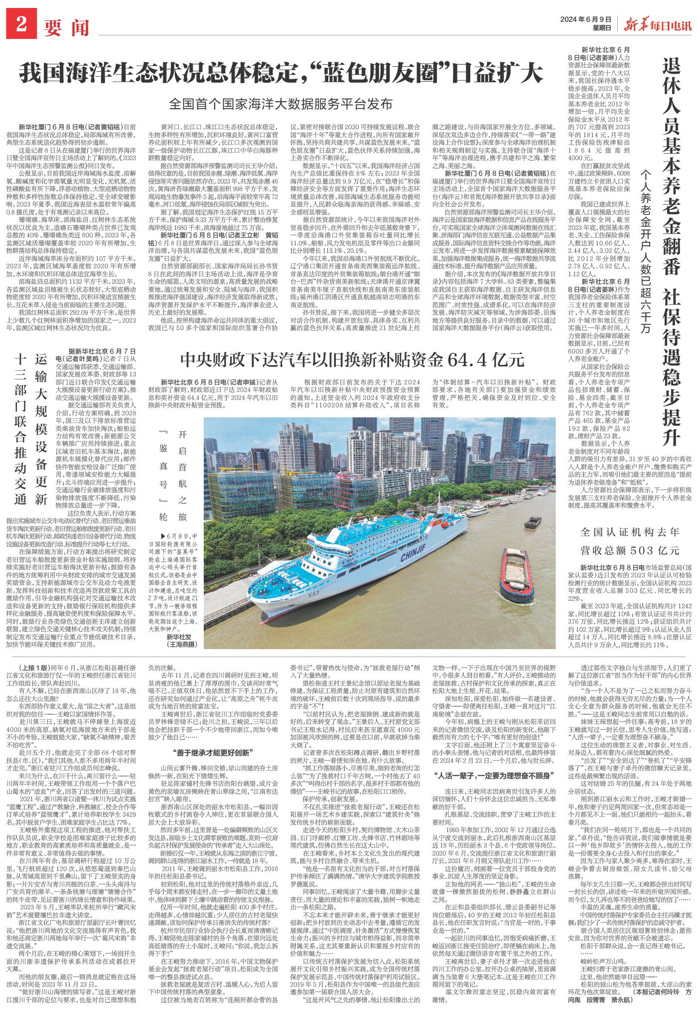 | ( 2024-06-09 ) 稿件来源:新华每日电讯 要闻 |