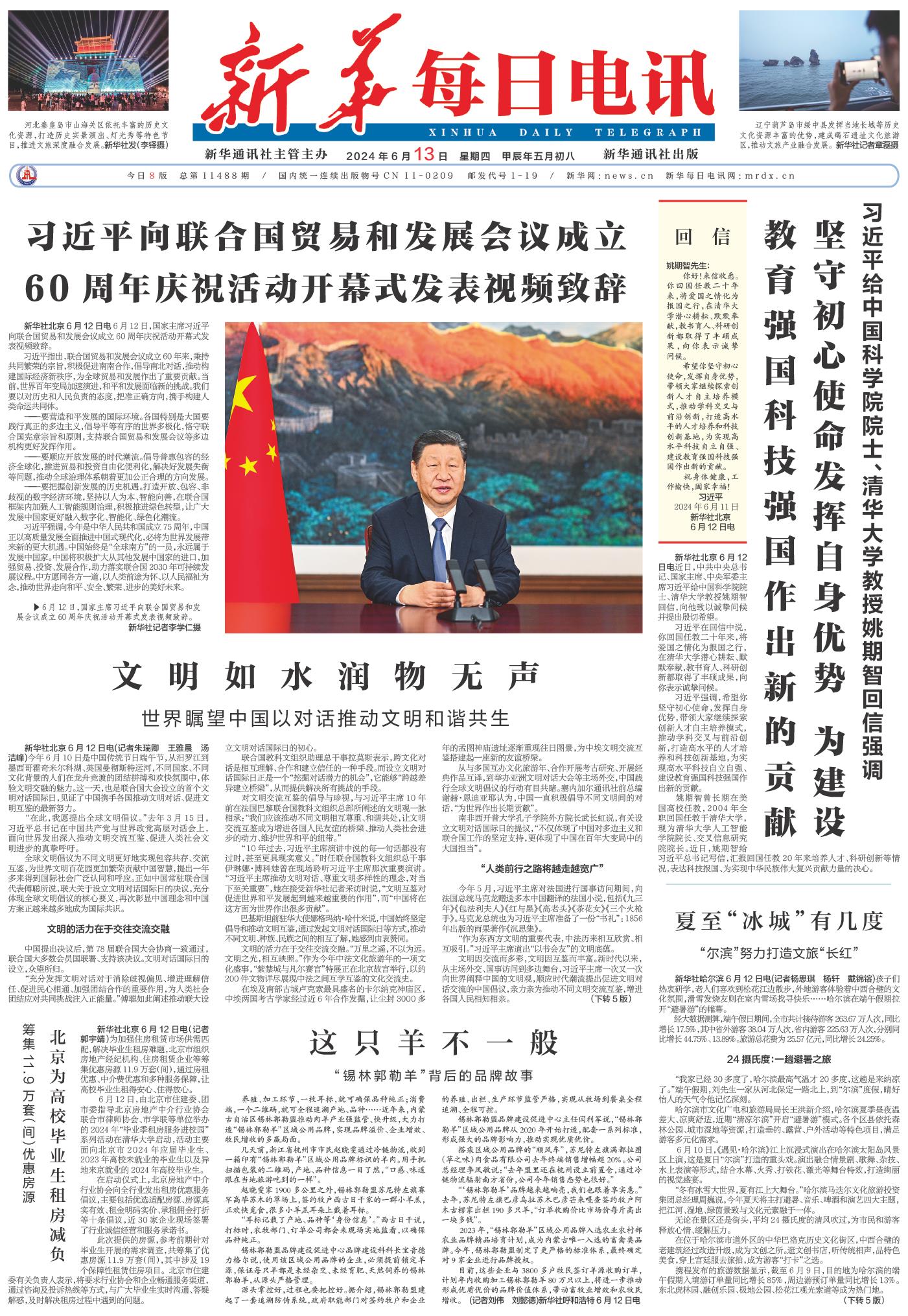 | ( 2024-06-13 ) 稿件来源:新华每日电讯 要闻 |