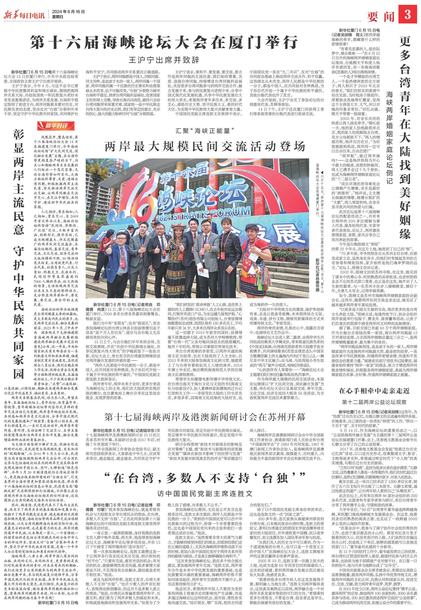 | ( 2024-06-16 ) 稿件来源:新华每日电讯 要闻 |