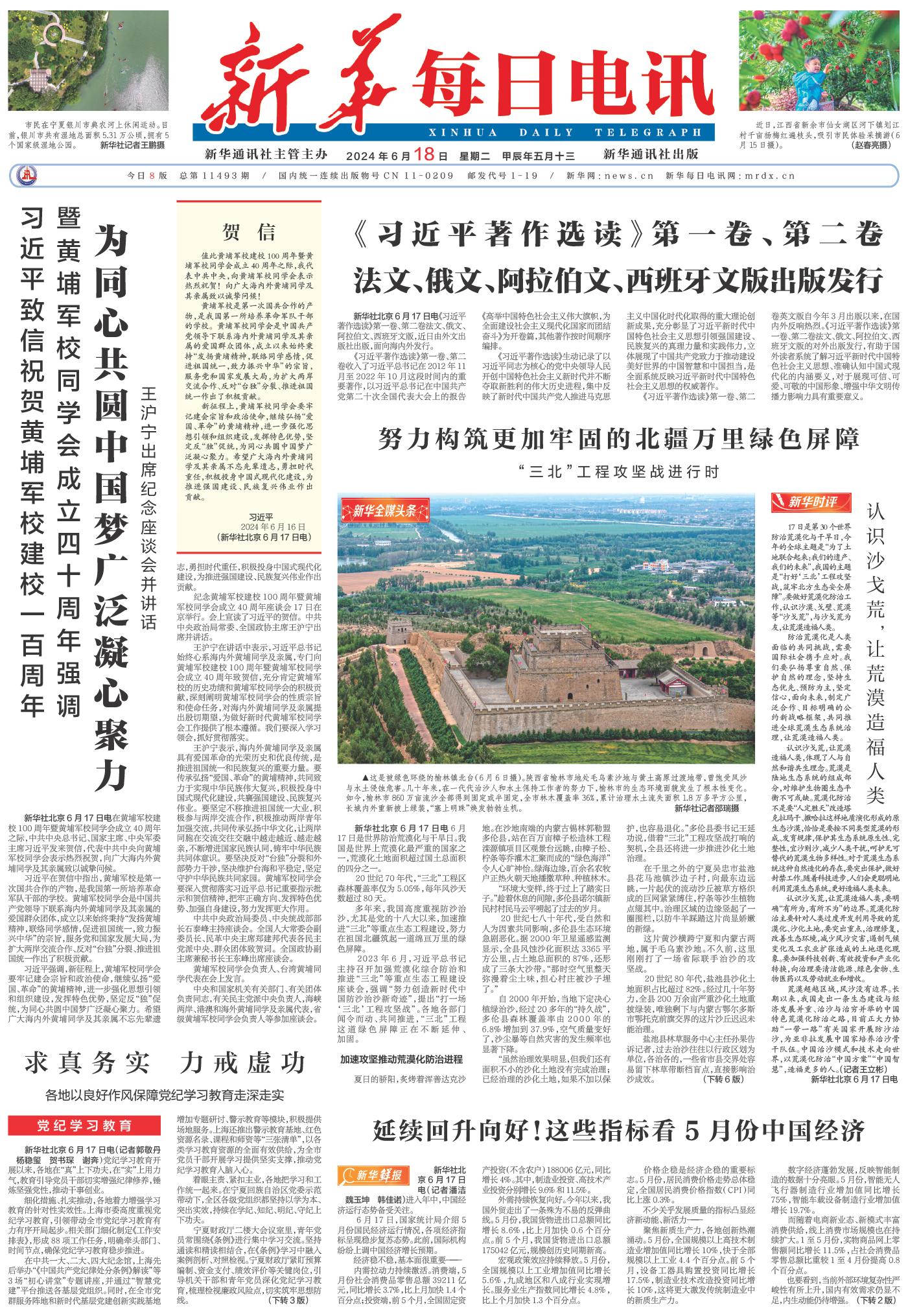 | ( 2024-06-18 ) 稿件来源:新华每日电讯 要闻 |