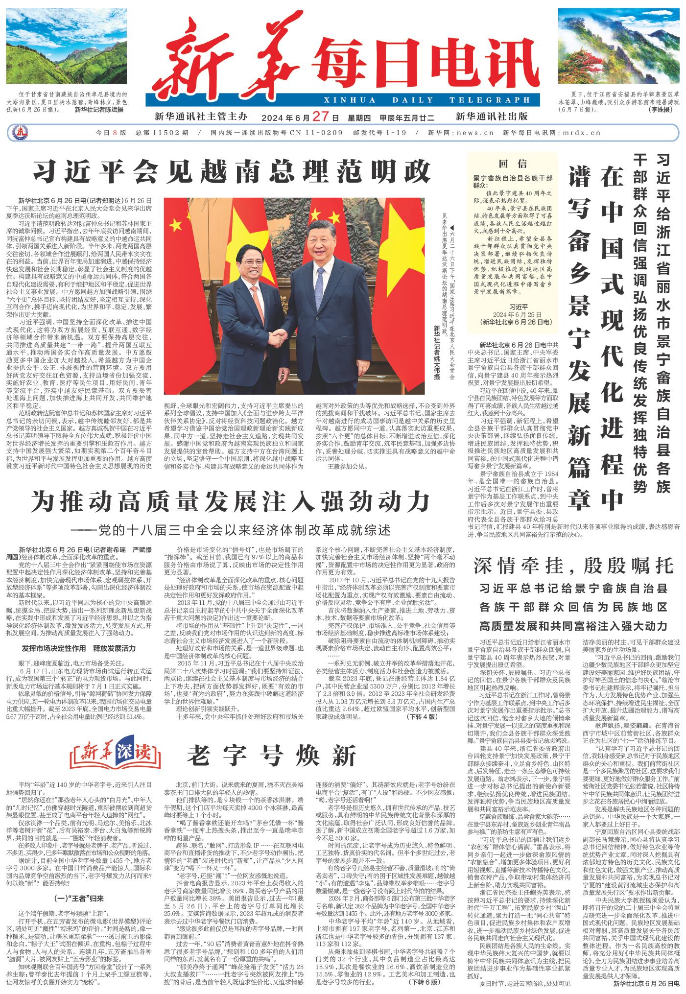 ( 2024-06-27 ) 稿件来源:新华每日电讯 要闻
