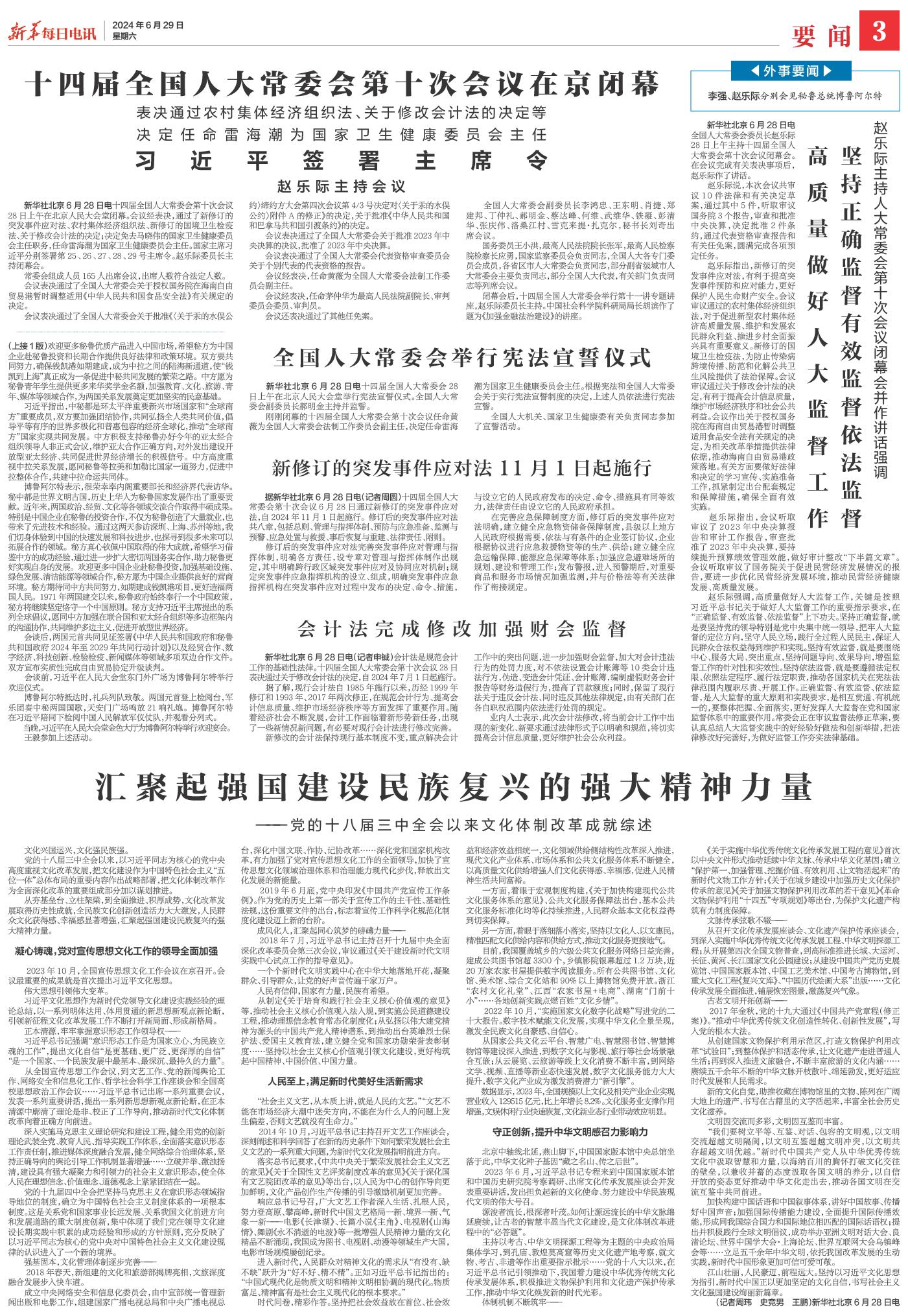 | ( 2024-06-29 ) 稿件来源:新华每日电讯 要闻 |