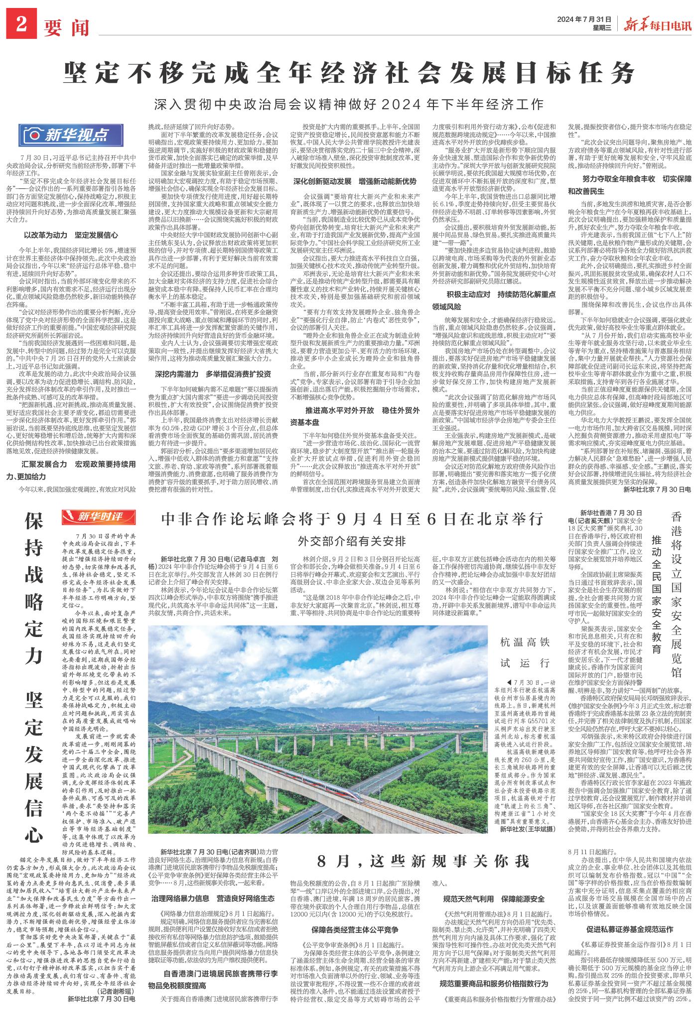 | ( 2024-07-31 ) 稿件来源:新华每日电讯 要闻 |