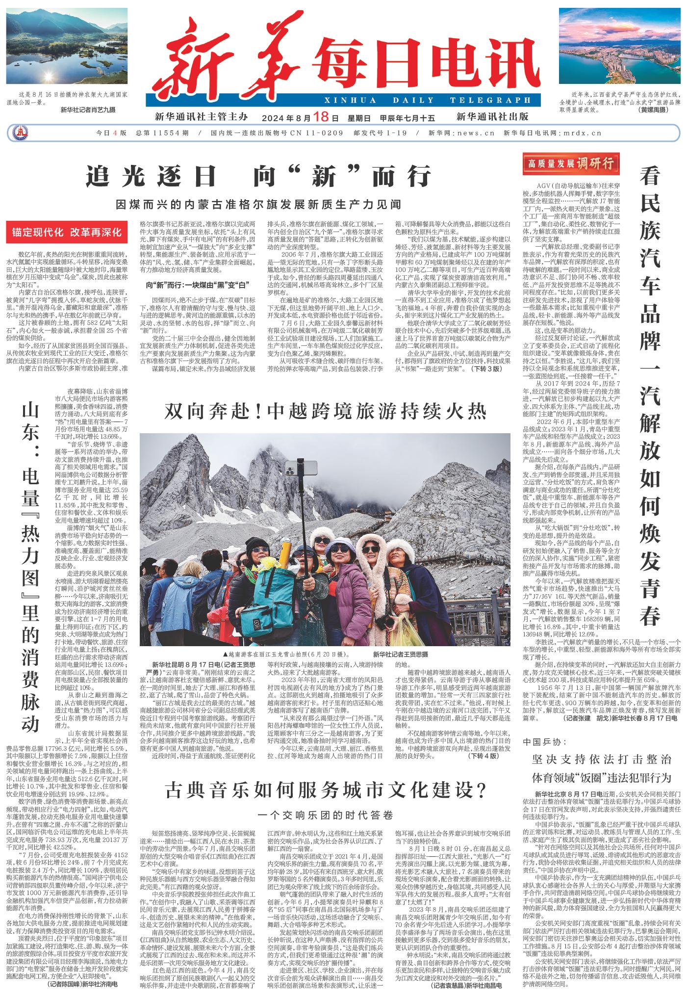 | ( 2024-08-18 ) 稿件来源:新华每日电讯 要闻 |