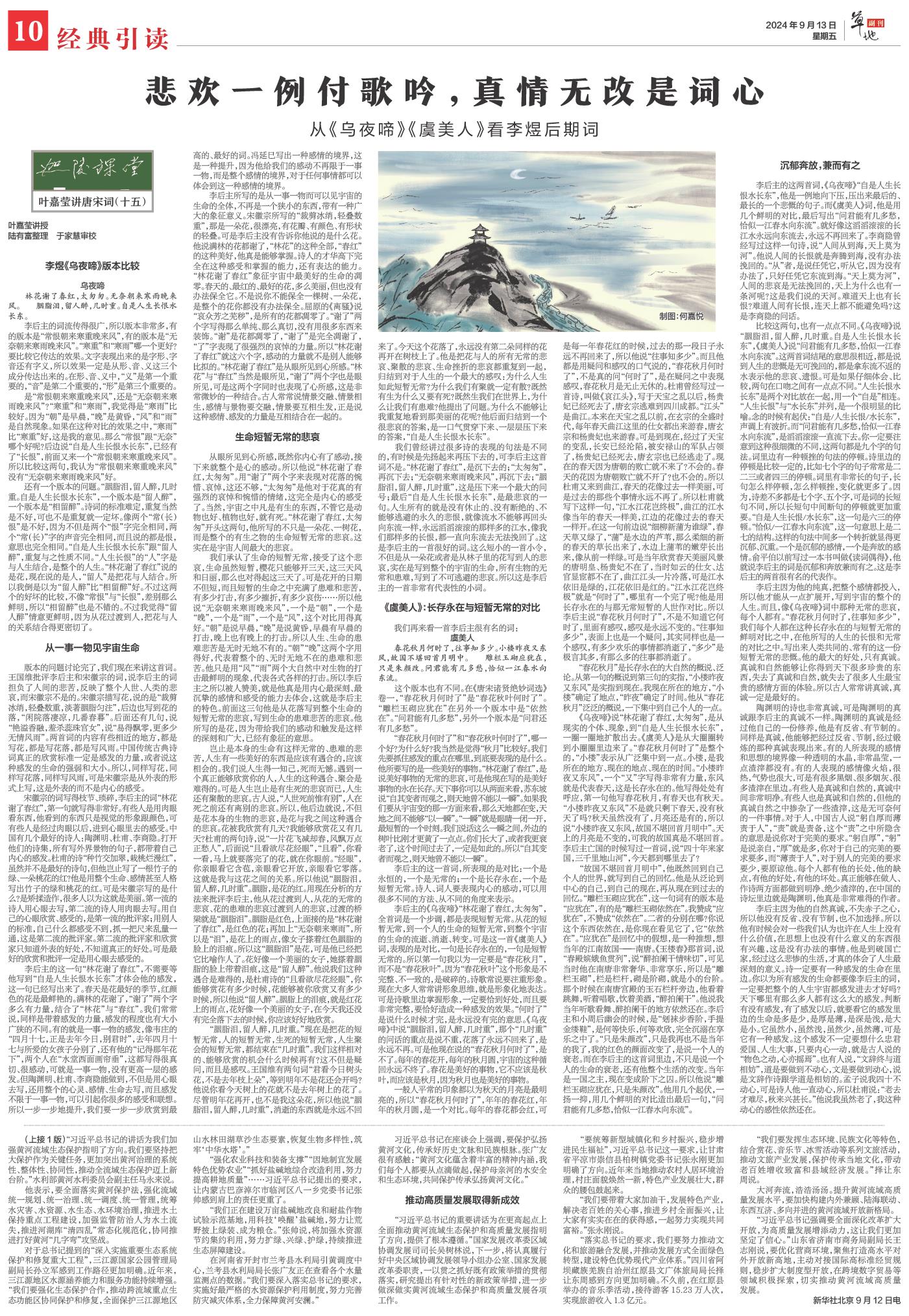 李后主因为他的自然真诚,不失赤子之心,所以他没有反省、没有节制,也不加选择。所以他有时候会对一些我们认为也许在人生上没有什么价值,在思想上也没有什么意义的东西很有兴趣,这是没有办法的事情。他是到破国亡家,经过这么悲惨的生活,才真的体会了人生最深刻的意义。诗一定要有一种感发的生命在里边。你以为所有感发的生命都要像李后主的词,一定要把整个的人生宇宙都感发进去才好吗?天下哪里有那么多人都有这么大的感发。判断有没有感发,有了感发以后,就要看它的感发里边的生命是多是少,是厚是薄,是深是浅,是大是小。它虽然小,虽然浅,虽然少,虽然薄,可是它有一种感发。这个感发不一定要想什么忠君爱国、人生大事,只要内心一动,就是古人说的“物色之动,心亦摇焉”。也有人说,“文辞终与道相妨”,道是要做到不动心,文是要做到动心,说是文辞作诗跟学道是相妨的。孟子说我四十不动心,可是诗人他一直动心,所以杜甫说:“老去才难尽,秋来兴甚长。”他说我虽然老了,我这种动心的感性依然还在。