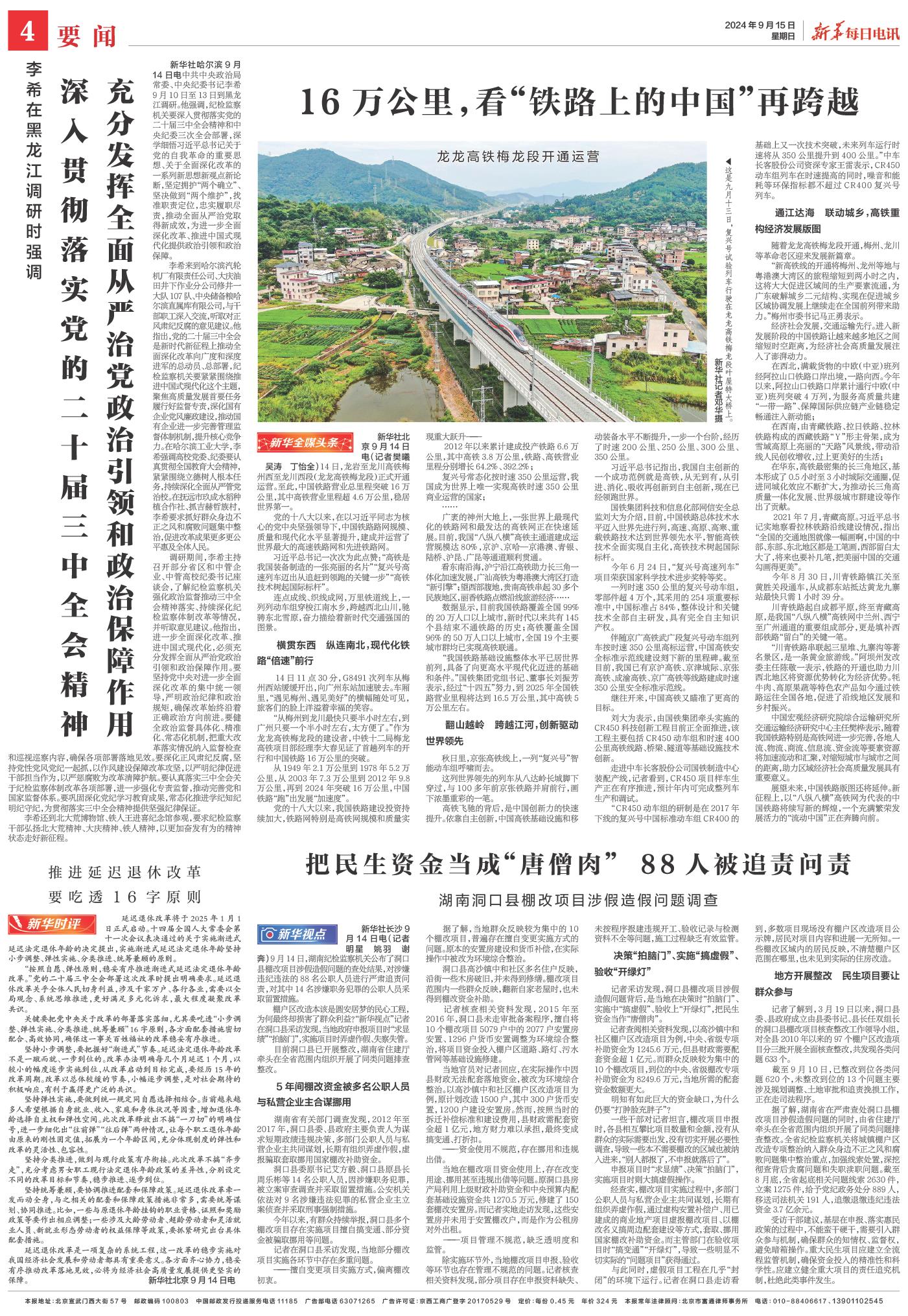 | ( 2024-09-15 ) 稿件来源:新华每日电讯 要闻 |