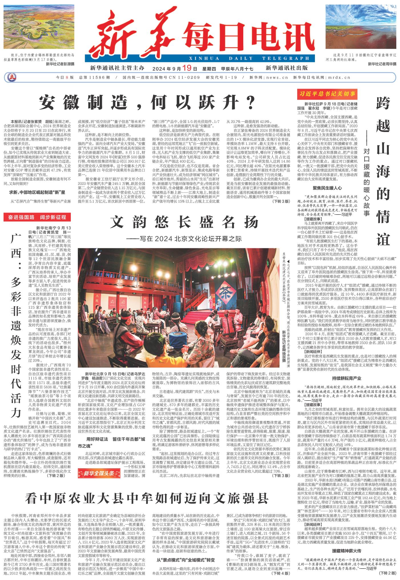 | ( 2024-09-19 ) 稿件来源:新华每日电讯 要闻 |