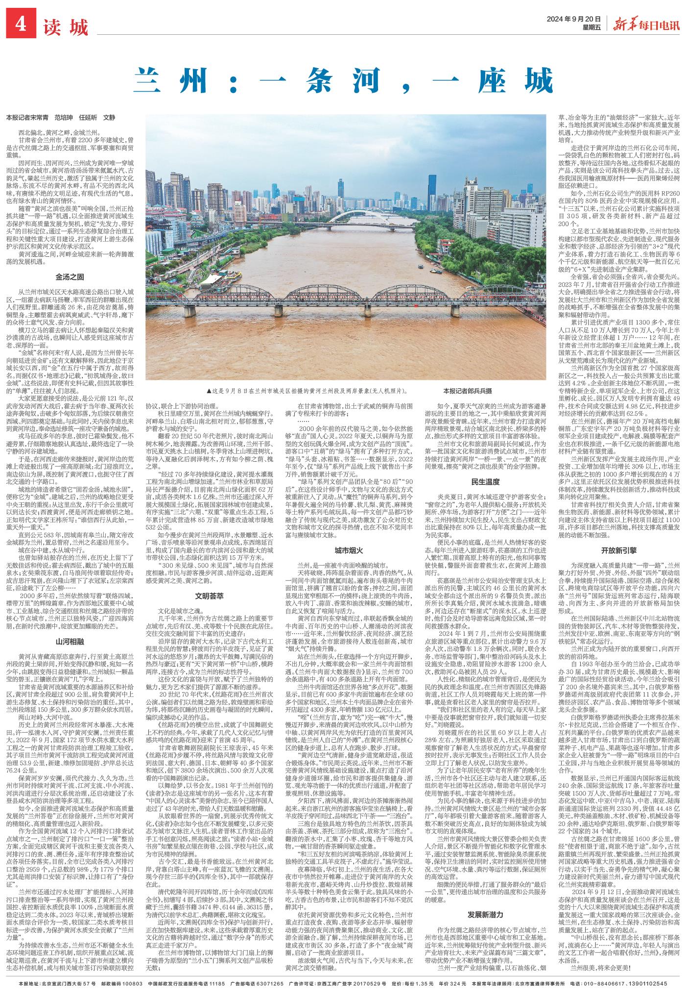 2024年9月12日,全面推动黄河流域生态保护和高质量发展座谈会在兰州召开,这是党的十八大以来围绕黄河流域生态保护和高质量发展这一重大国家战略的第三次座谈会。金城兰州,在生态修复、水土保持、污染防治和高质量发展上,站在了新的起点。