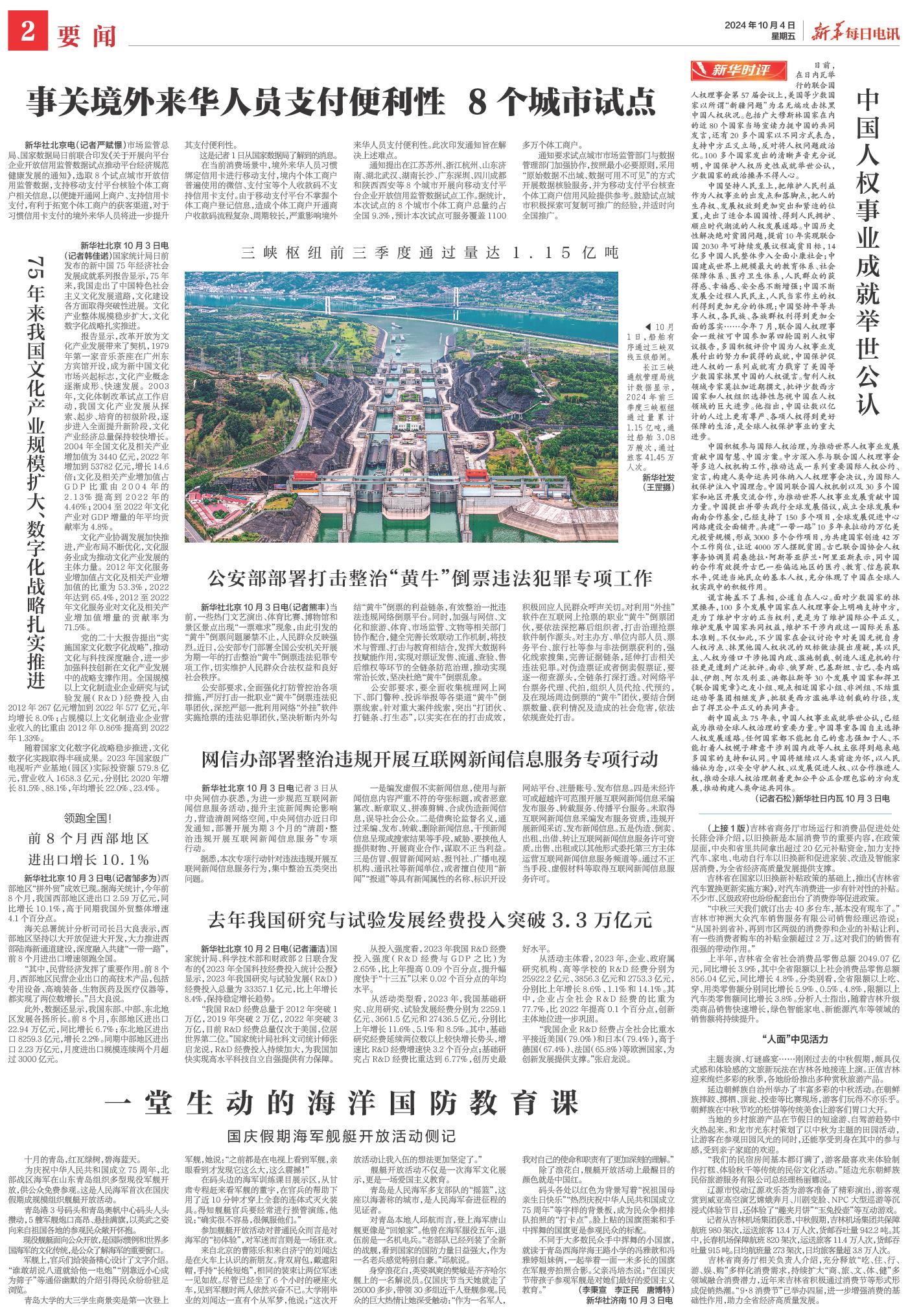 | ( 2024-10-04 ) 稿件来源:新华每日电讯 要闻 |