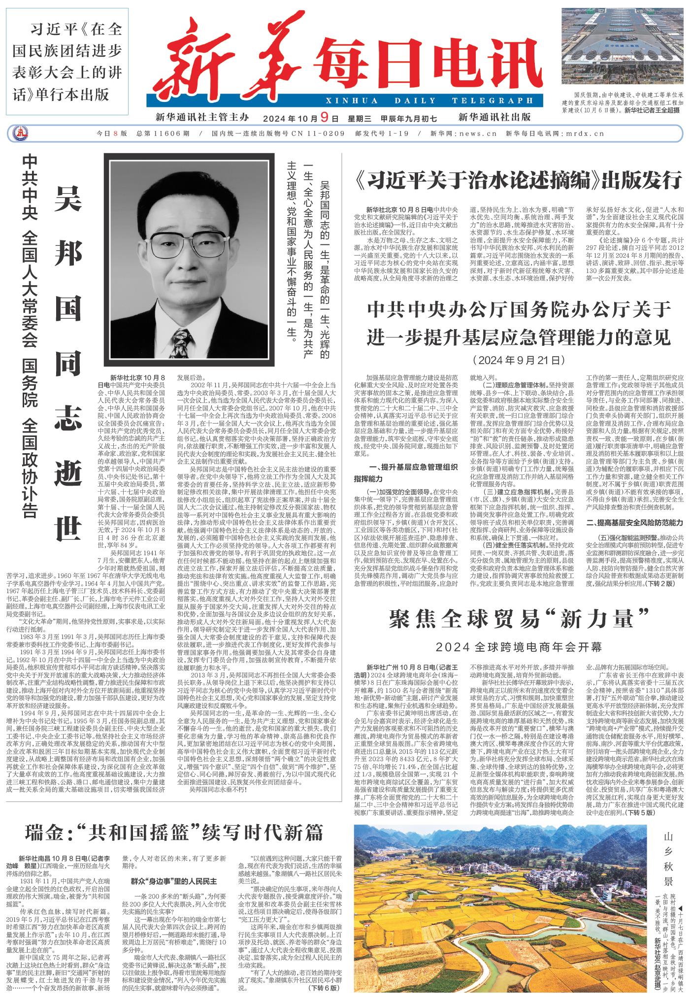 | ( 2024-10-09 ) 稿件来源:新华每日电讯 要闻 |