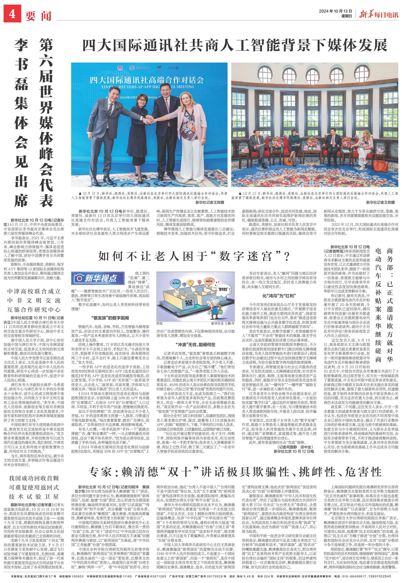 | ( 2024-10-13 ) 稿件来源:新华每日电讯 要闻 |