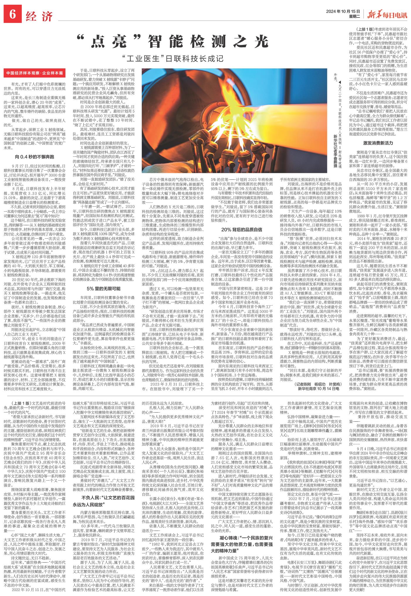 从抽检到全检,从离线到在线,从二维到三维……日联科技研发的X射线源发出的这束光,不仅照亮了自己,也照亮了越来越多的“中国制造”。