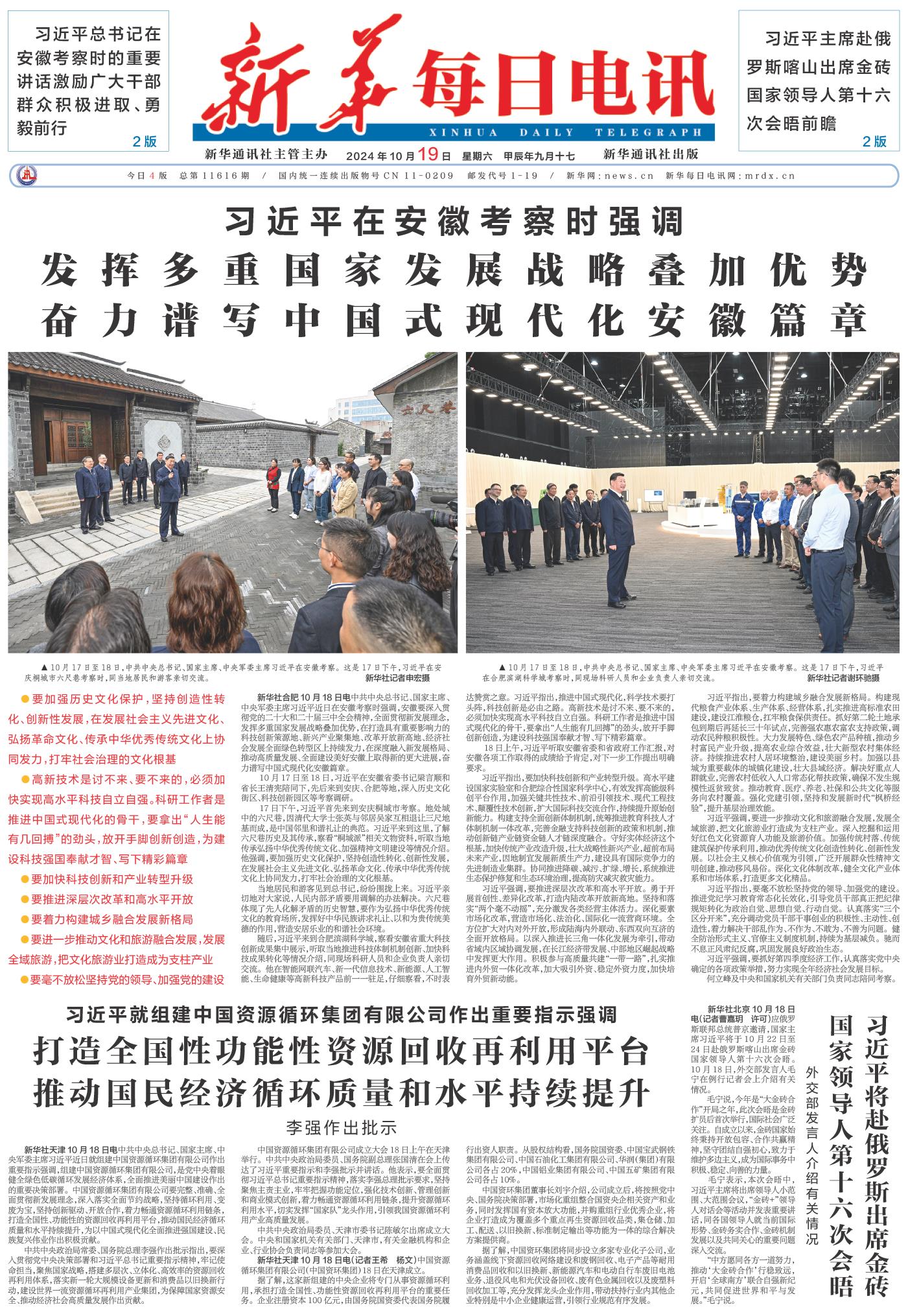 | ( 2024-10-19 ) 稿件来源:新华每日电讯 要闻 |