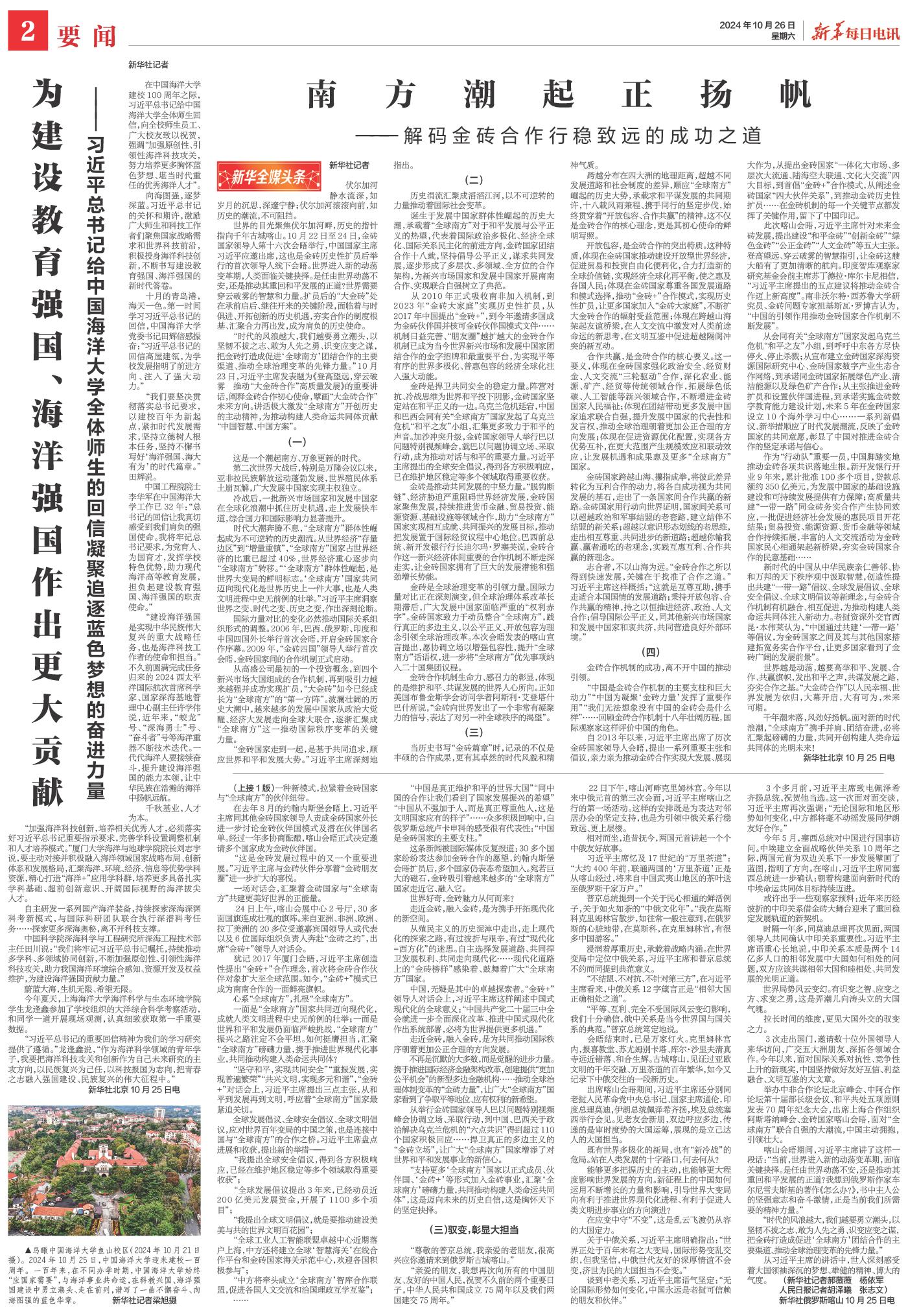 | ( 2024-10-26 ) 稿件来源:新华每日电讯 要闻 |