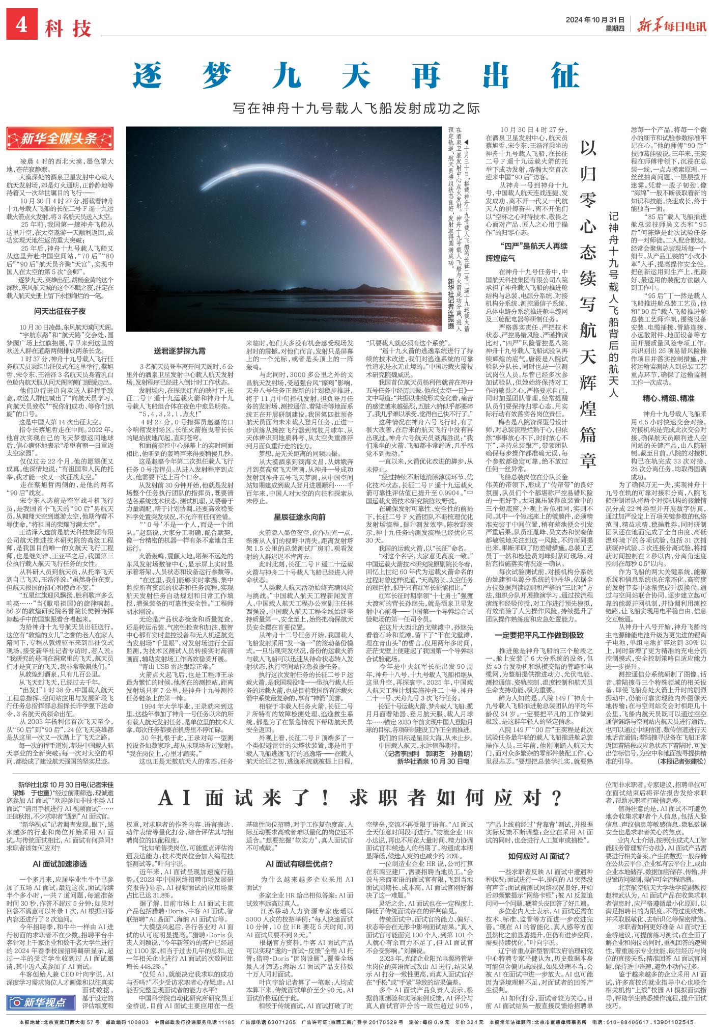 25年后,神舟十九号载人飞船又从这里奔赴中国空间站,“70后”“80后”“90后”航天员齐聚“天宫”,实现中国人在太空的第5次“会师”。