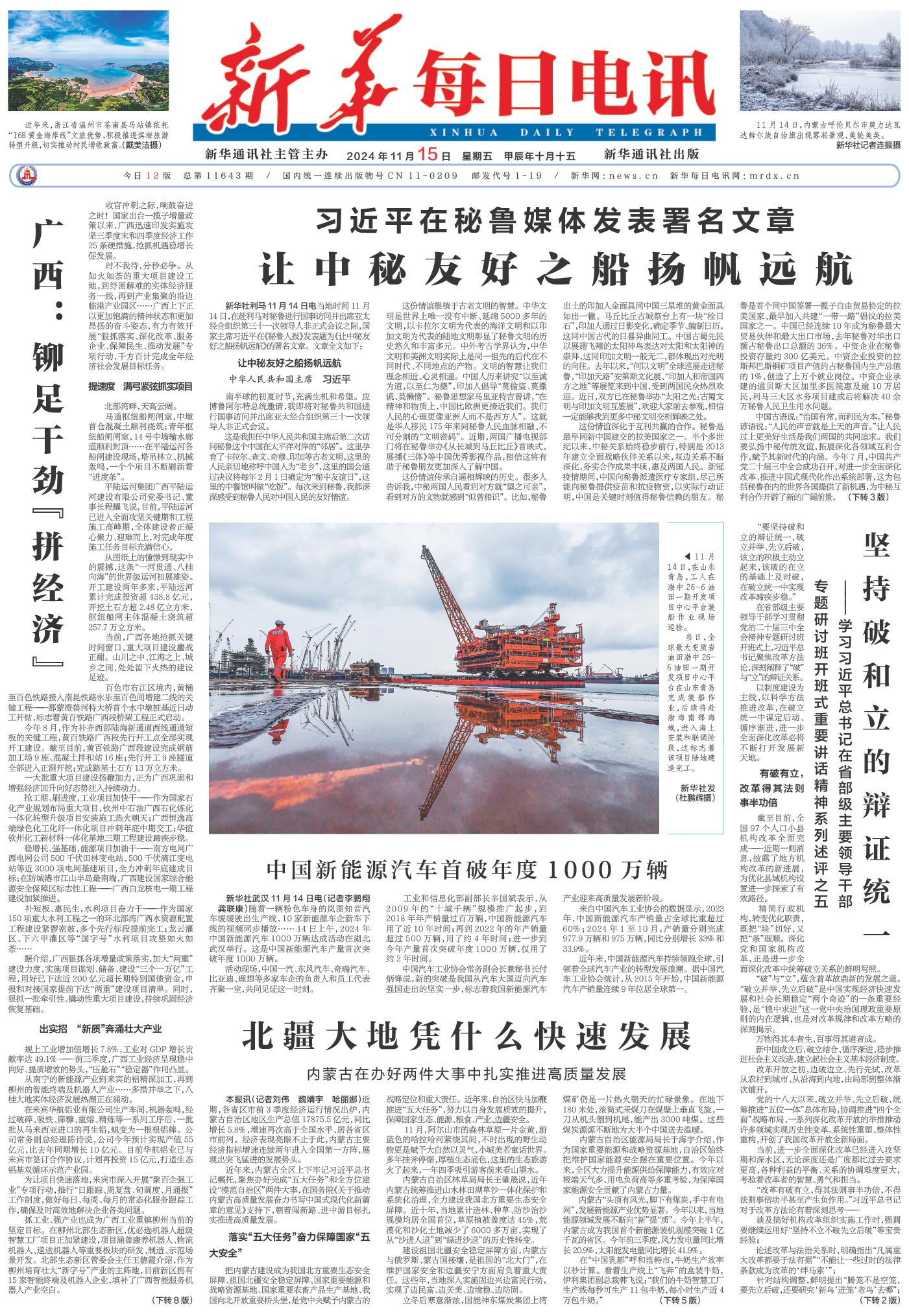 | ( 2024-11-15 ) 稿件来源:新华每日电讯 要闻 |