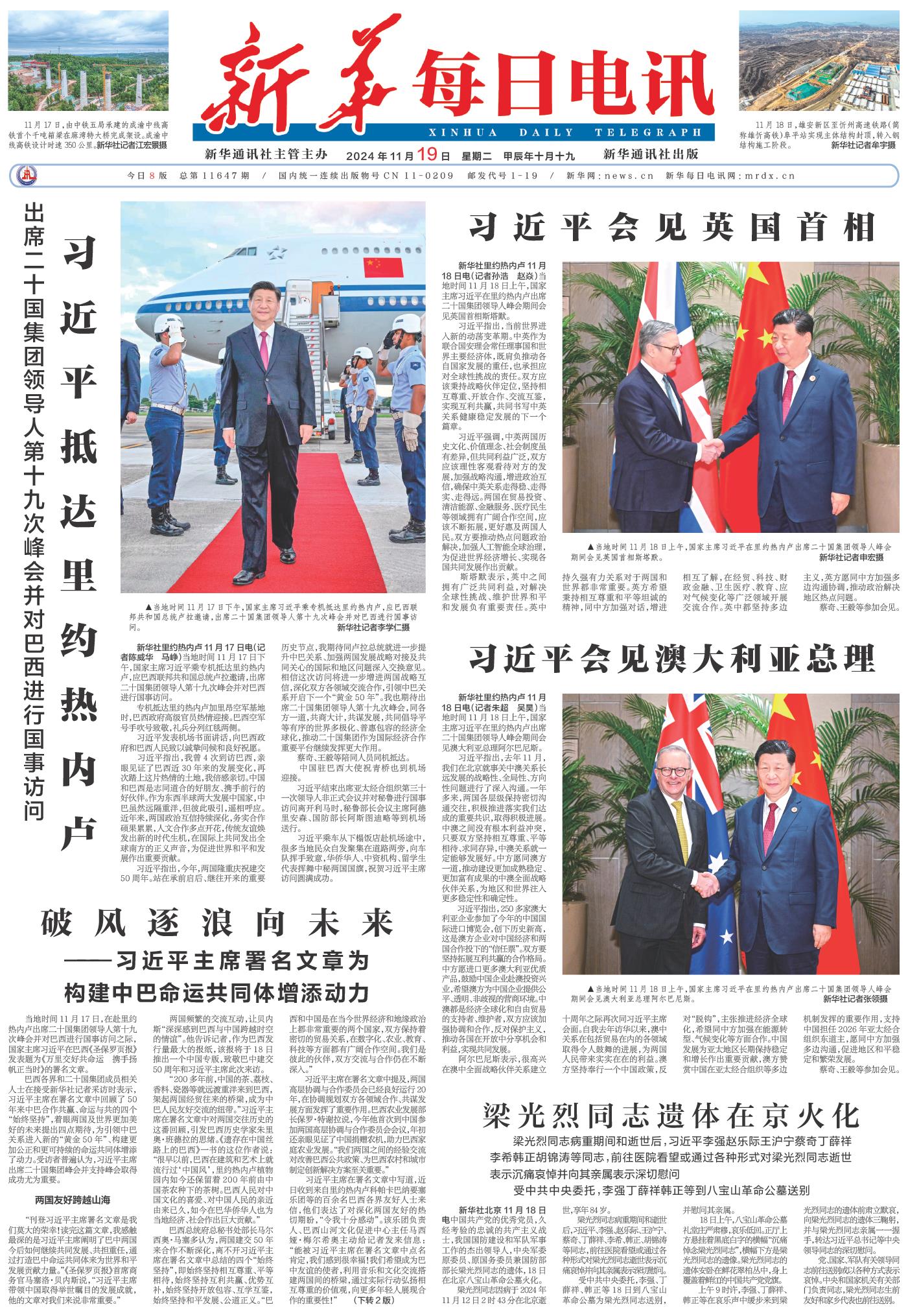 | ( 2024-11-19 ) 稿件来源:新华每日电讯 要闻 |