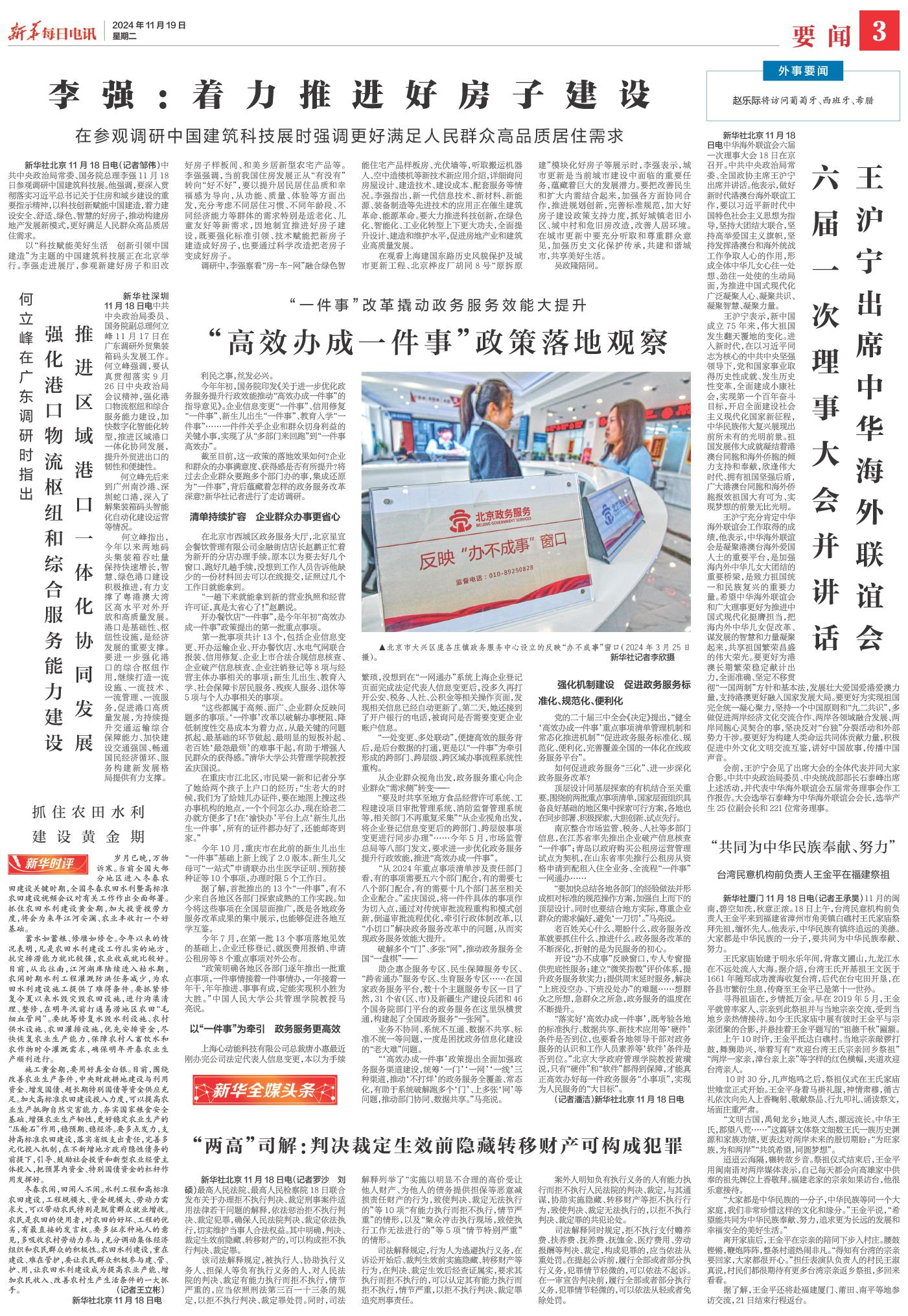 | ( 2024-11-19 ) 稿件来源:新华每日电讯 要闻 |