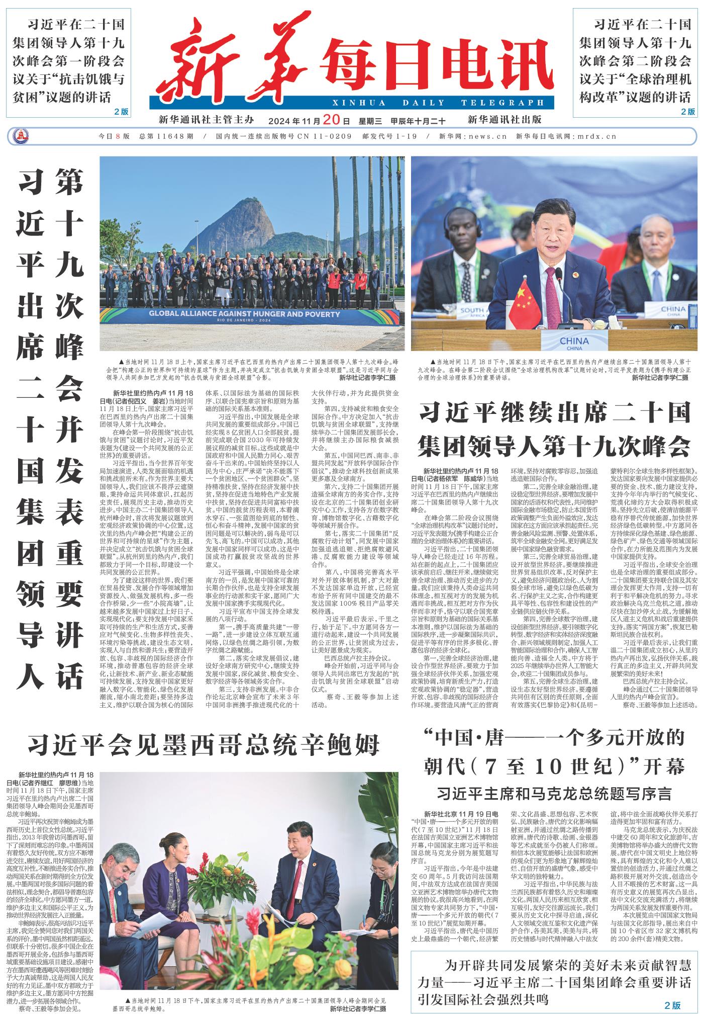 | ( 2024-11-20 ) 稿件来源:新华每日电讯 要闻 |