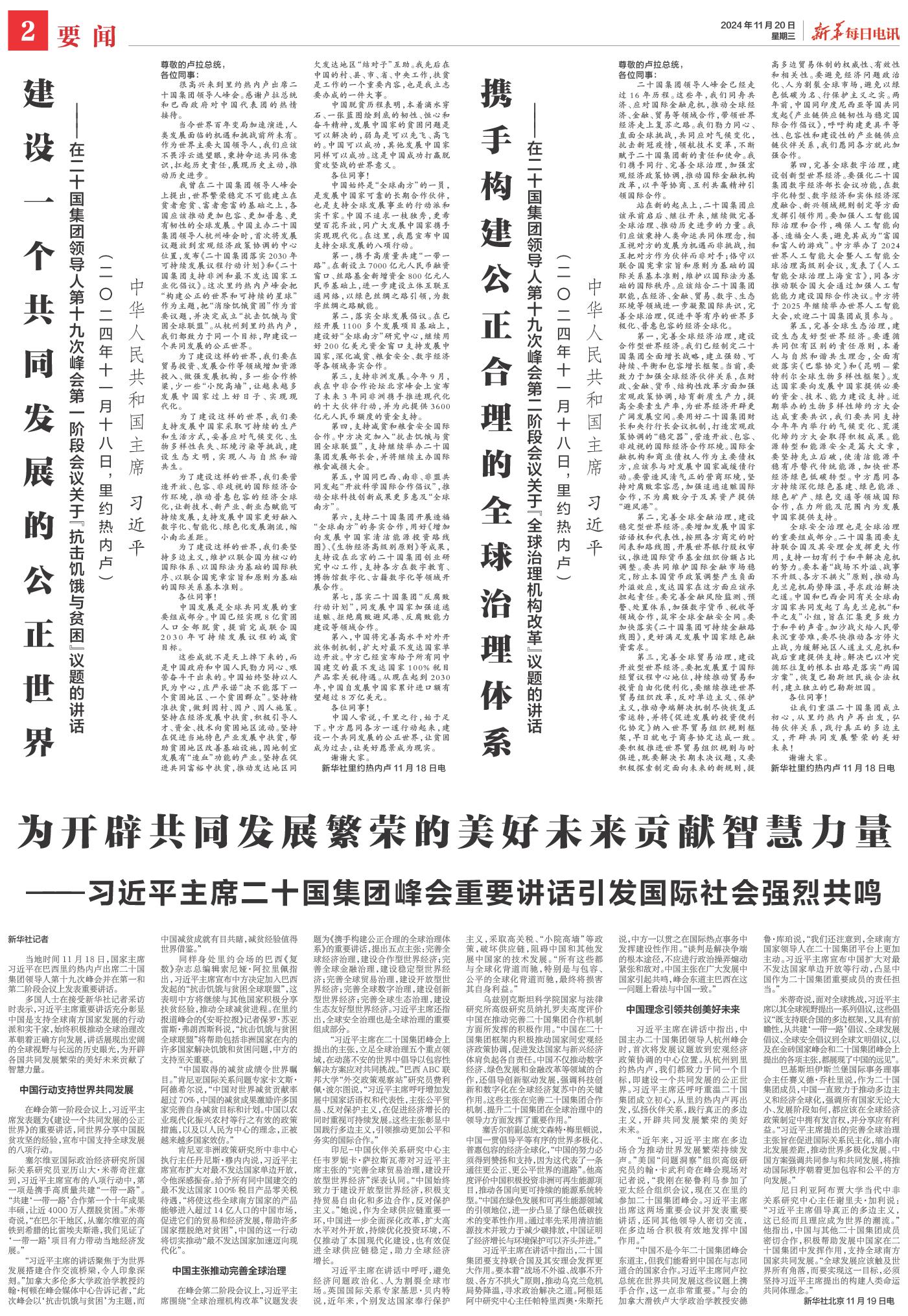 | ( 2024-11-20 ) 稿件来源:新华每日电讯 要闻 |