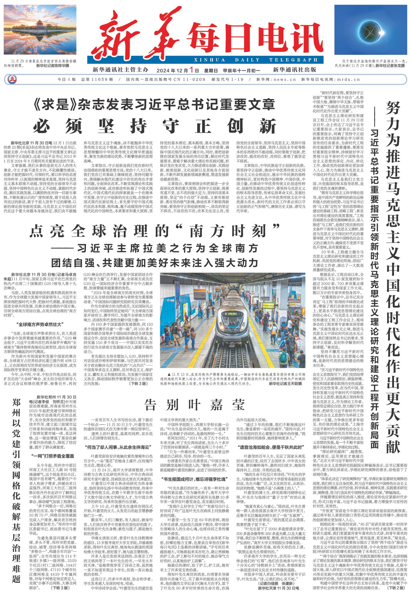 | ( 2024-12-01 ) 稿件来源:新华每日电讯 要闻 |