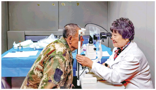 | ▲11月26日,在铁岭市西丰县明德满族乡,眼科医生为就诊患者诊治。 |