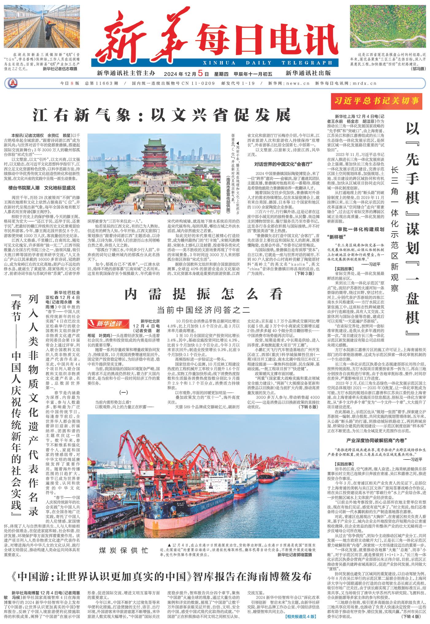 | ( 2024-12-05 ) 稿件来源:新华每日电讯 要闻 |