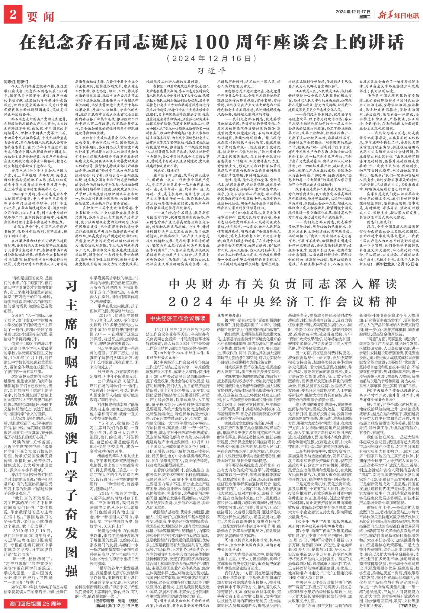 | ( 2024-12-17 ) 稿件来源:新华每日电讯 要闻 |