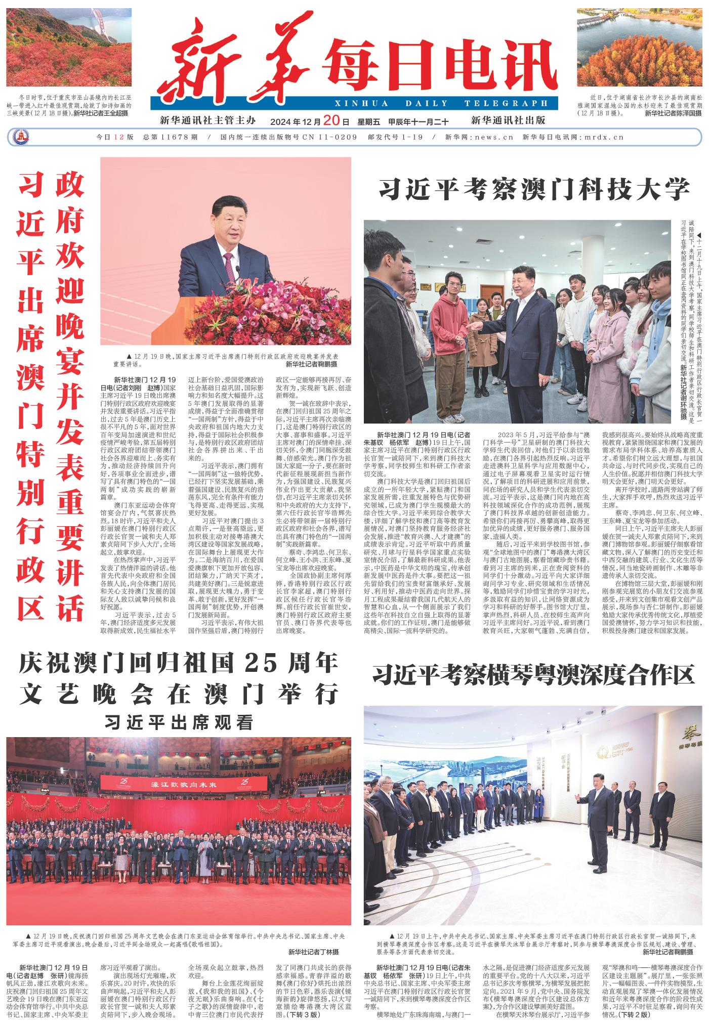 | ( 2024-12-20 ) 稿件来源:新华每日电讯 要闻 |