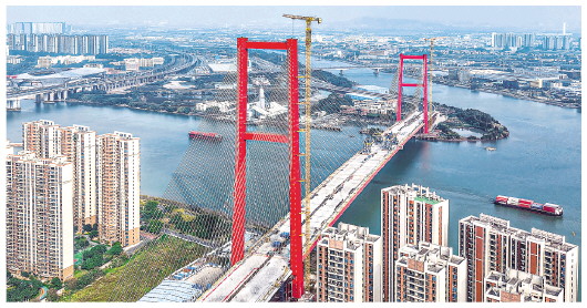 ▲顺德大桥横跨容桂水道,连接顺德容桂与大良两个街道(12月24日摄)。当日,由中交路建承建的顺德大桥顺利合龙。位于广东省佛山市顺德区的顺德大桥是主跨626米的超大跨径钢混组合索塔斜拉桥,索塔采用变截面H型塔柱,塔高分别为204米、151米。大桥建成后将有效打通顺德融入粤港澳大湾区“一小时交通圈”的内部区域道路瓶颈。 新华社记者刘大伟摄