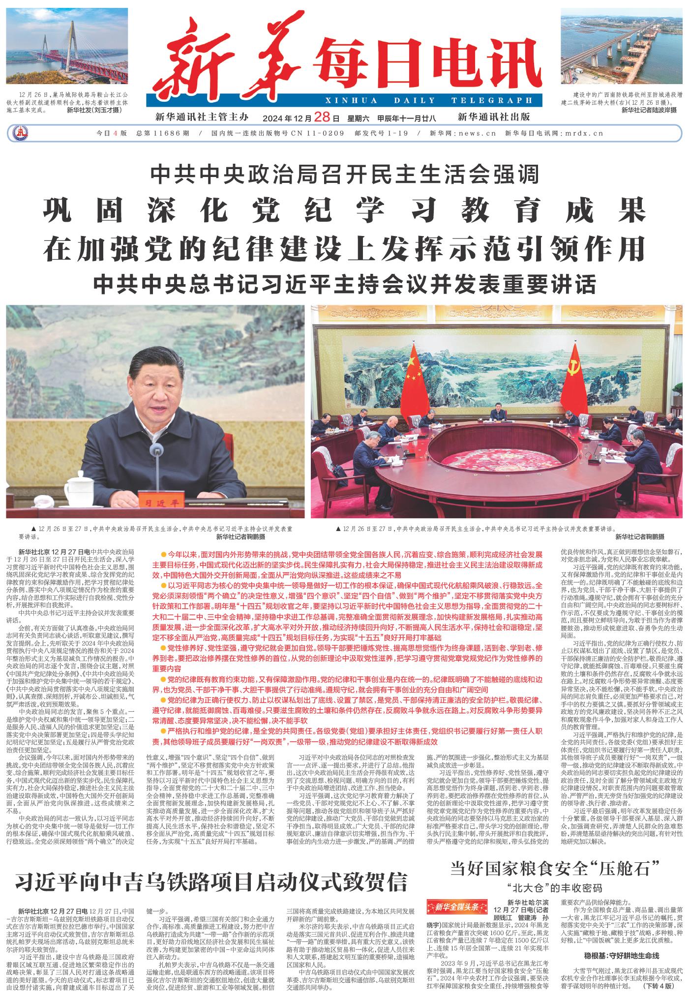 | ( 2024-12-28 ) 稿件来源:新华每日电讯 要闻 |